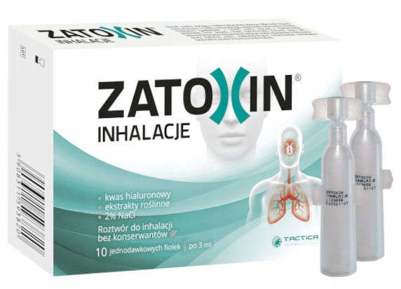 Zatoxin Inhalacje - це інгаляційний розчин для інгаляцій, що складається з гіпертонічного розчину на основі екстрактів трав: меліси, перилли та чебрецю в поєднанні з кислою гіалуроновою кислотою.