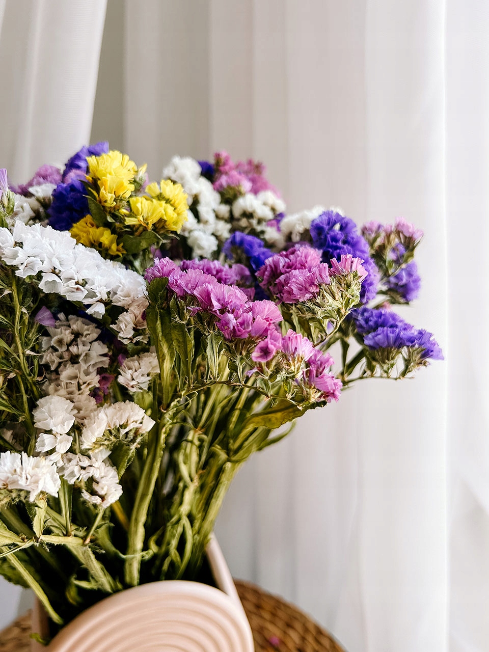 Сушений ZATRWIAN, також відомий як Limonium, - це букет красивих квітів у весняних та літніх кольорах - у красивих та весняних кольорах - домінують відтінки рожевого та фіолетового, є також жовті, білі та блакитні кольори. Флористи, декоратори та любителі природних посух Zatrwian цінують головним чином за те, що його легко сушити. І що є головною перевагою, квіти не втрачають своїх красивих кольорів. Букет буде довго радувати око. Квіти походять із місцевого вирощування.