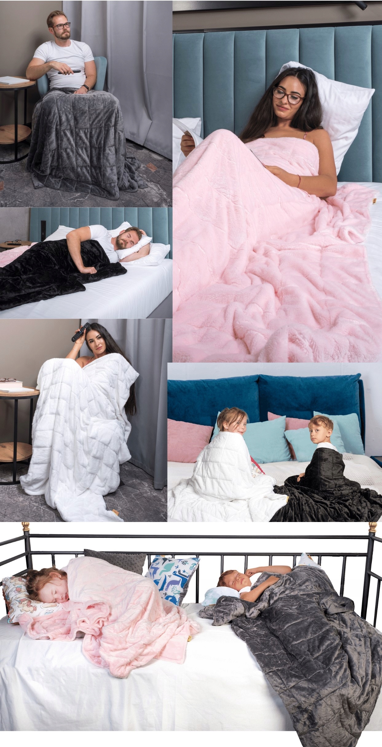 ✅ Кому потрібно завантажувати ковдру? 4 Затримка ковдри для дорослих допомагає відновити здоровий сон , фізичний та психічний баланс, відновити належні функції тіла, допомагає в лікуванні болю, у боротьбі з проблемами тривоги та пам’яті. Jest idealny do otulania w nocy jak i podczas dziennego odpoczynku czy medytacji