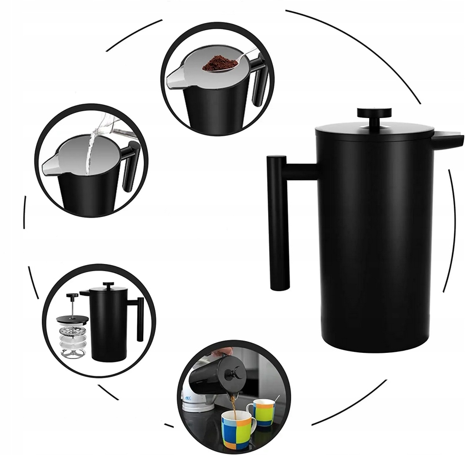 Теплова конструкція міжна -міждресиста та висока якість зі сталевою конструкцією з подвійними ізольованими стінами з вакуумом, ефективно зупиняє теплу каву довше, ніж у традиційному французькому пресі. Це ідеальне рішення для тих, хто любить повільно пити каву або хоче готувати більше напою, не боячись його охолодження.