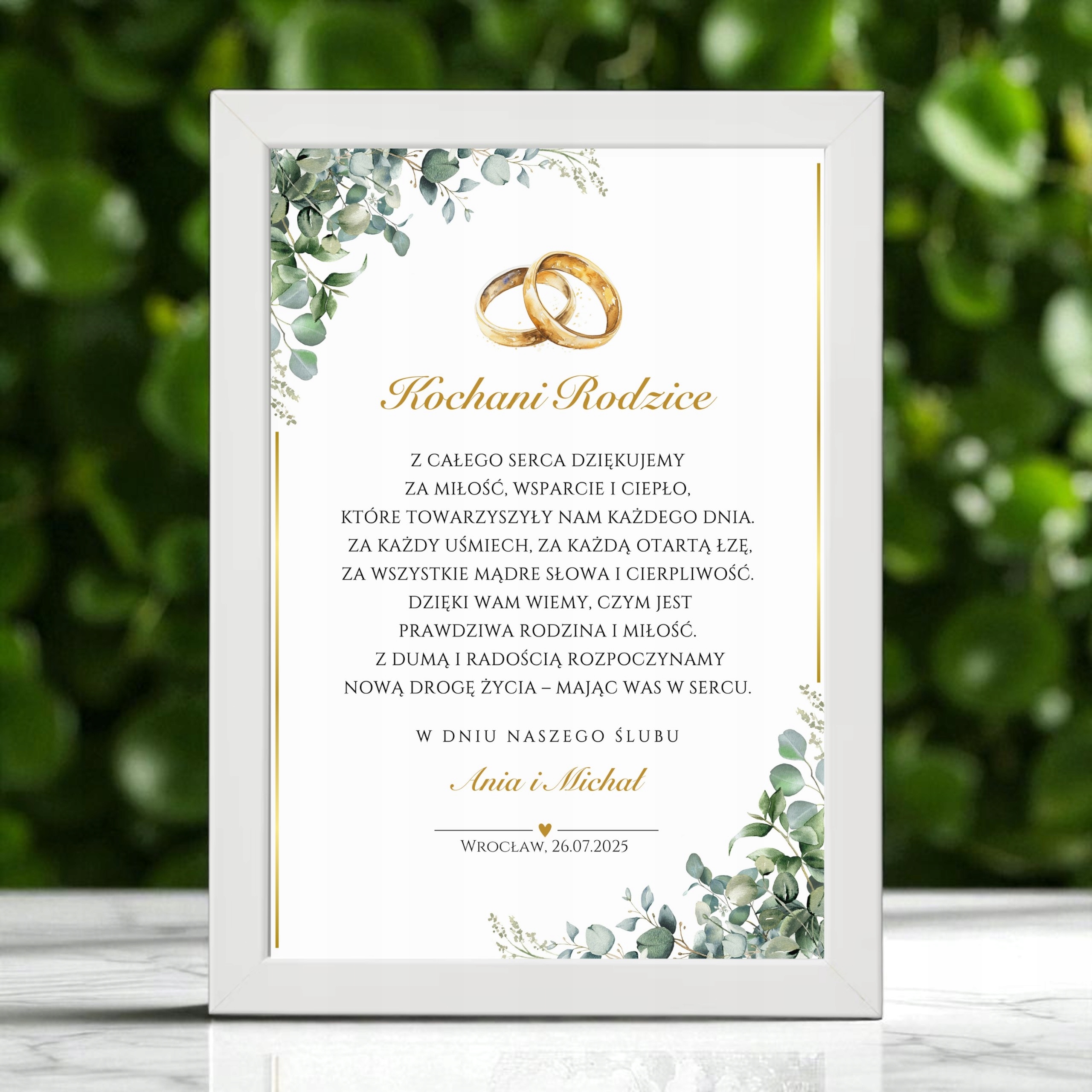 Унікальний весільний подарунок - завдяки батькам, бабусям та бабусям та близьким людям в елегантному рамці