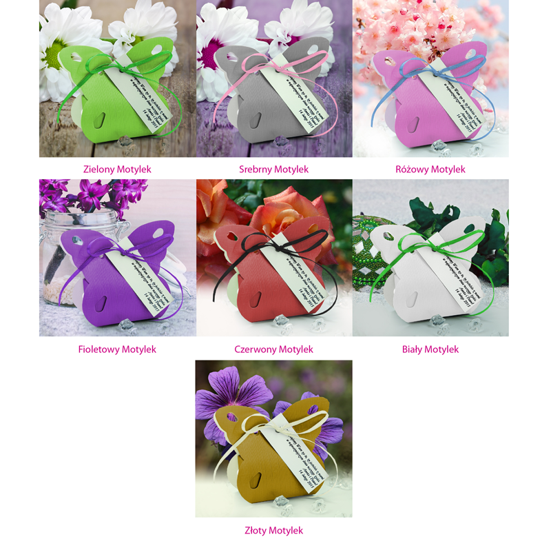 бажаючи подякувати всім за те, що вони приїхали на весільну вечірку, ми купуємо оригінальні подарунки для гостей. Наша пропозиція - унікальна та оригінальна коробки для весільних гостей у формі метелика, в яких ми можемо поставити символічні статуетки, солодощі чи інші дрібнички. Коробка також включає віньєтку, на якій ми можемо поставити будь -який текст у вигляді подяки. cm
