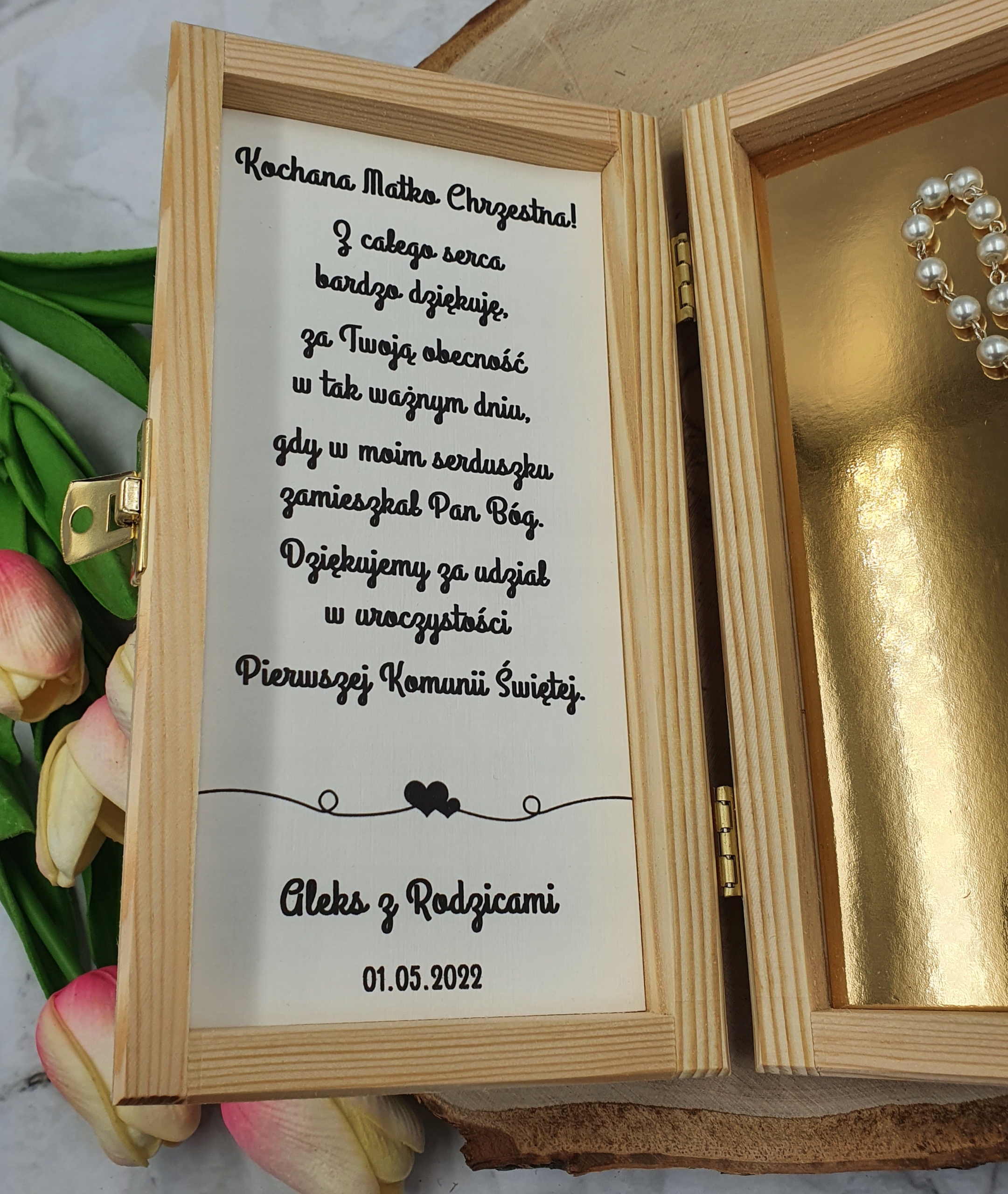 Перше Святе Причастя - це унікальна подія в житті дитини та його батьків, але також хрещених батьків та бабусь і дідусів. Форма хрещеного батька, хрещеного батька, бабуся, дідусь, гостей. Ви також можете подякувати вам. Ви можете надіслати власну. - Натуральна деревина