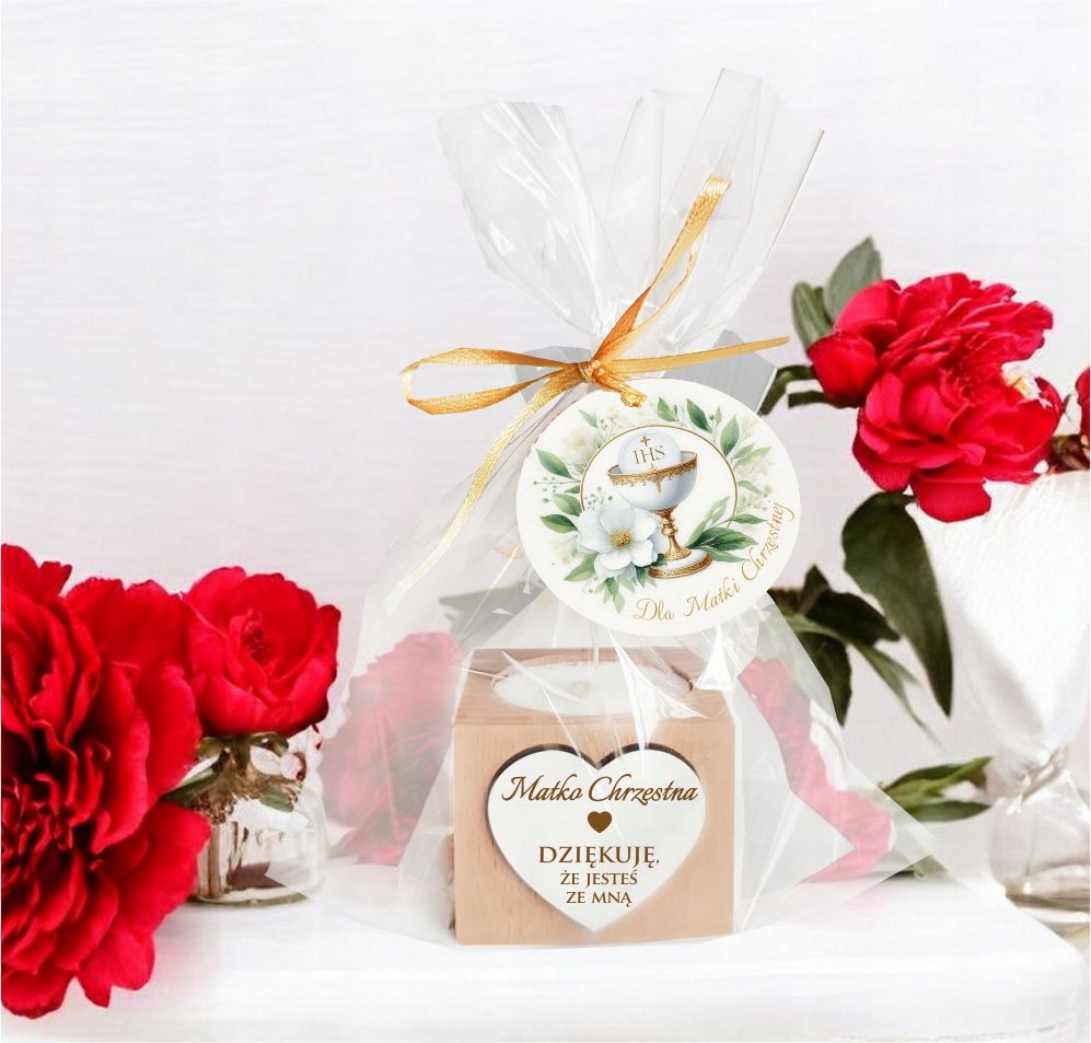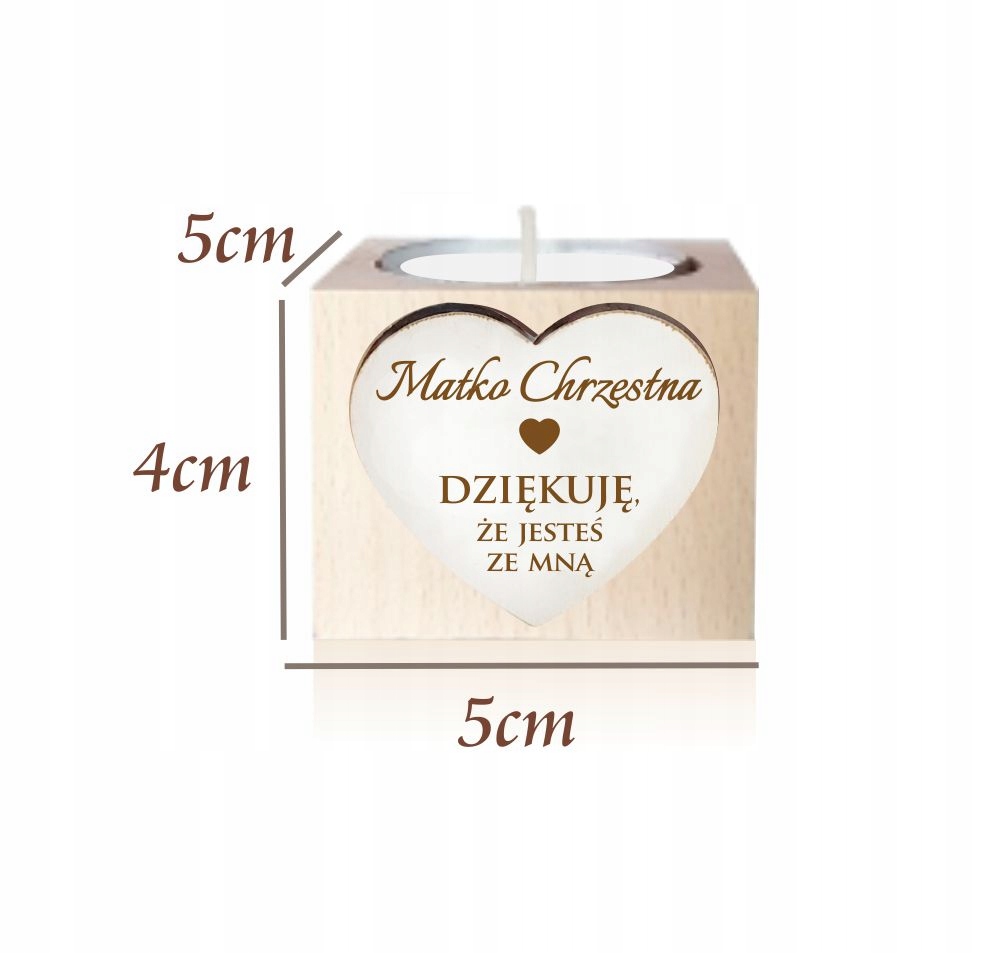 Дерев’яна свічник з гравірованим серцем - це ідеальний сувенір з першого святого Причастя!