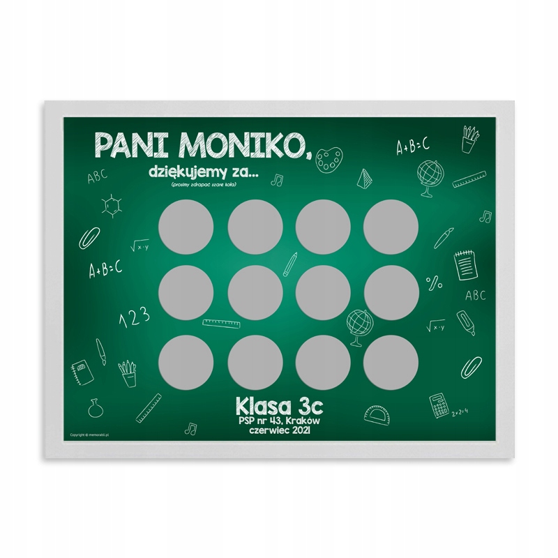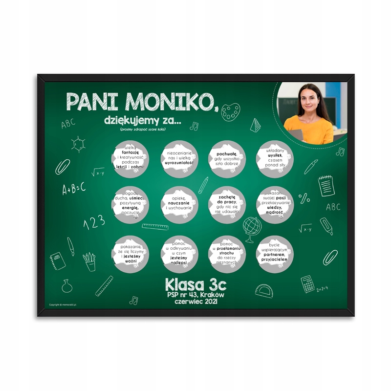 персоналізовані сторінки подряпин - це чудовий подарунок для вчителя в кінці навчального року, на день народження, наприкінці освіти з даним викладачем. Під частками для подряпин ви можете приховати будь -які тексти, побажання, сюрпризи, , які приємно здивуватимуть одержувача :) Версія плаката, запропонована для вчителів зі шкіл. У нашій пропозиції інші аукціони також містять плакати як подарунок від молодших дітей дошкільного віку.