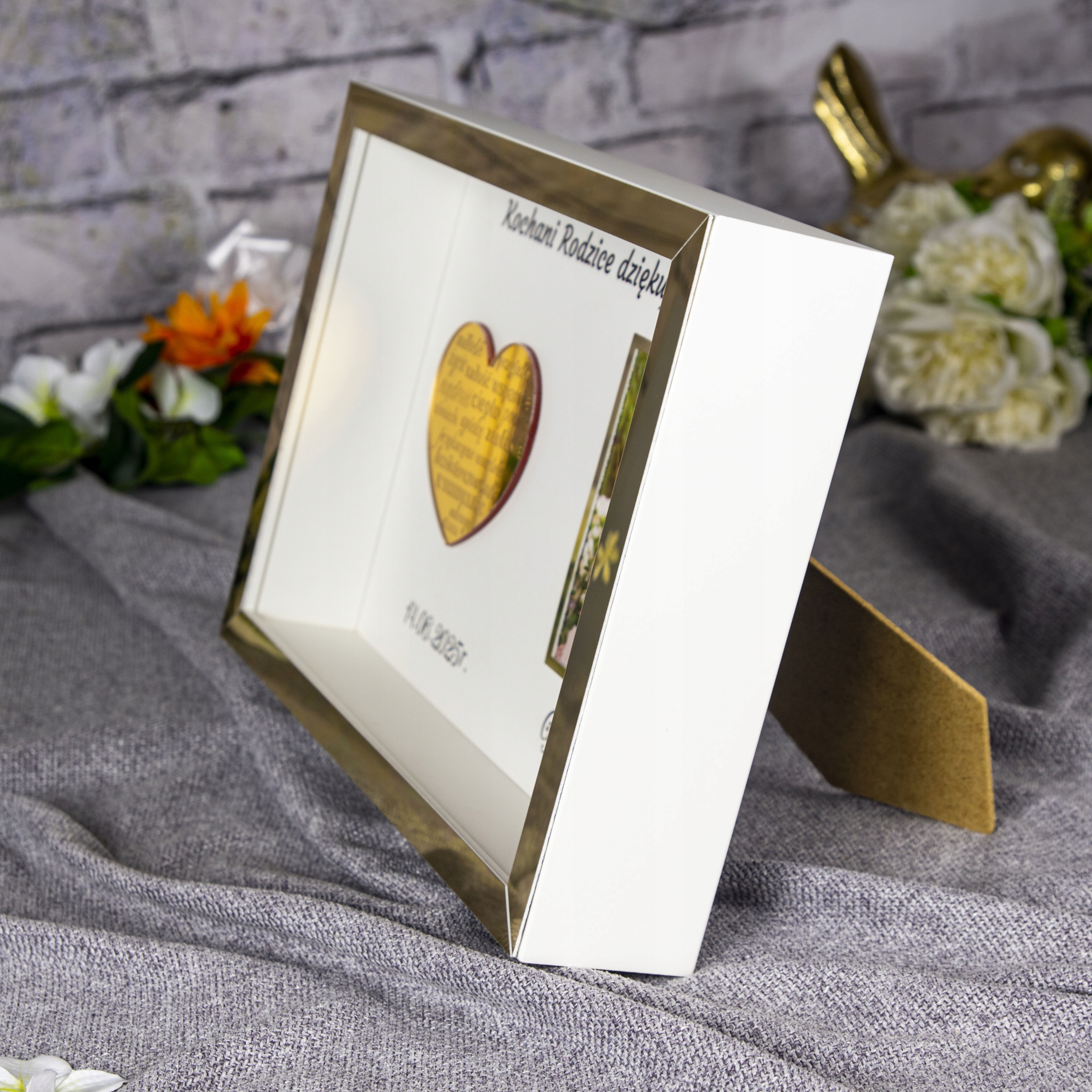 ✅ Golden heart with beautiful inscriptions - decorative, three -dimensional heart made of a golden mirror, containing words such as "love", "support", "trust" and " It symbolizes the values that parents gave you all their lives.