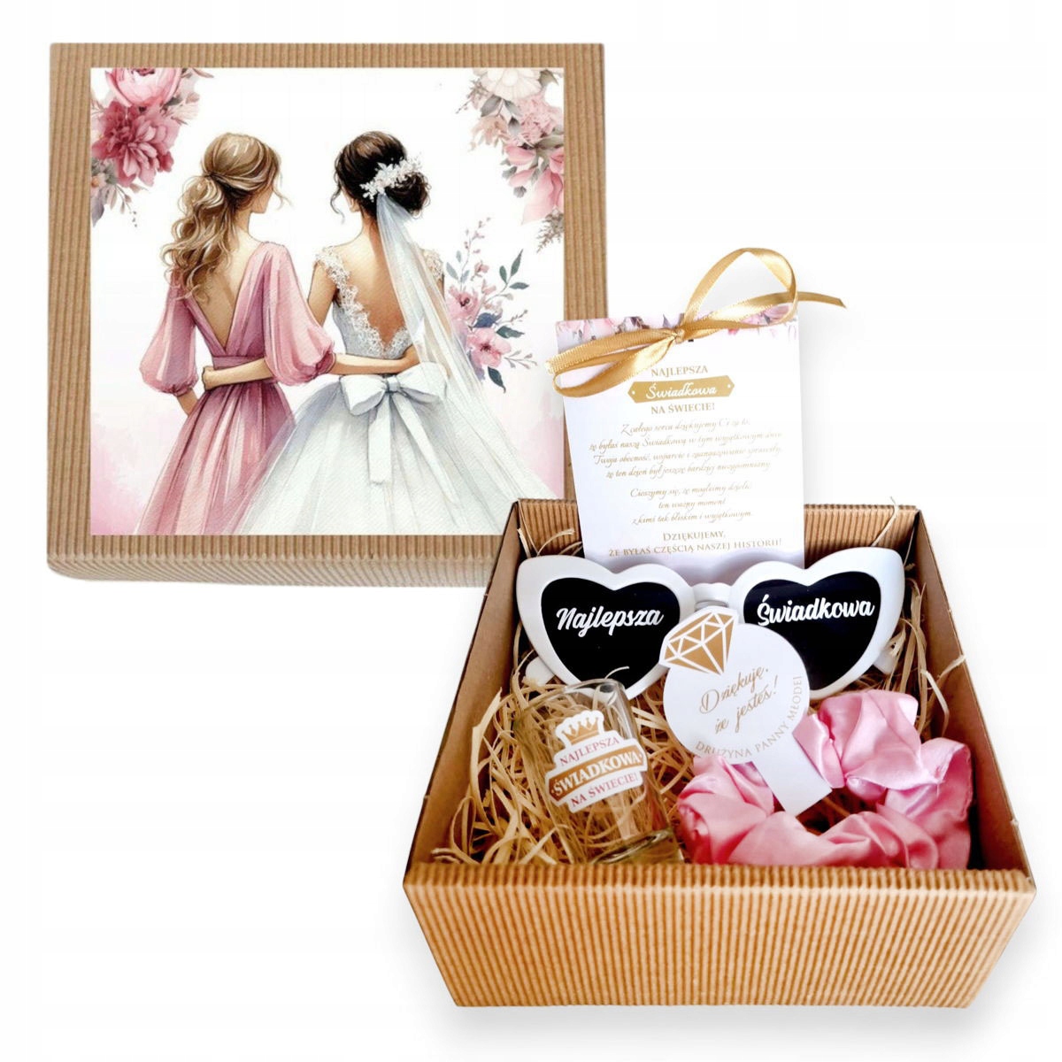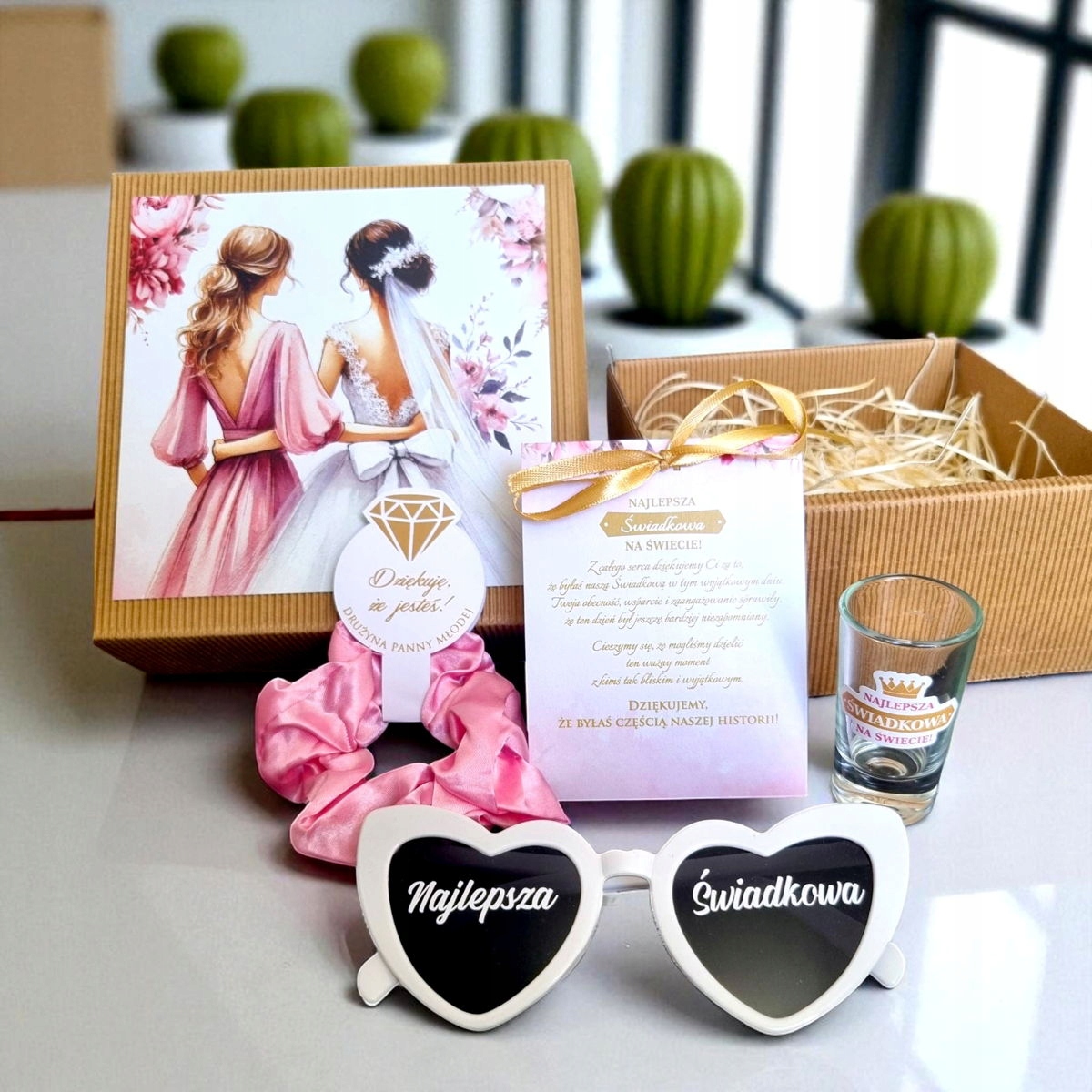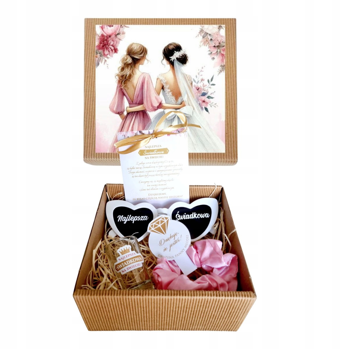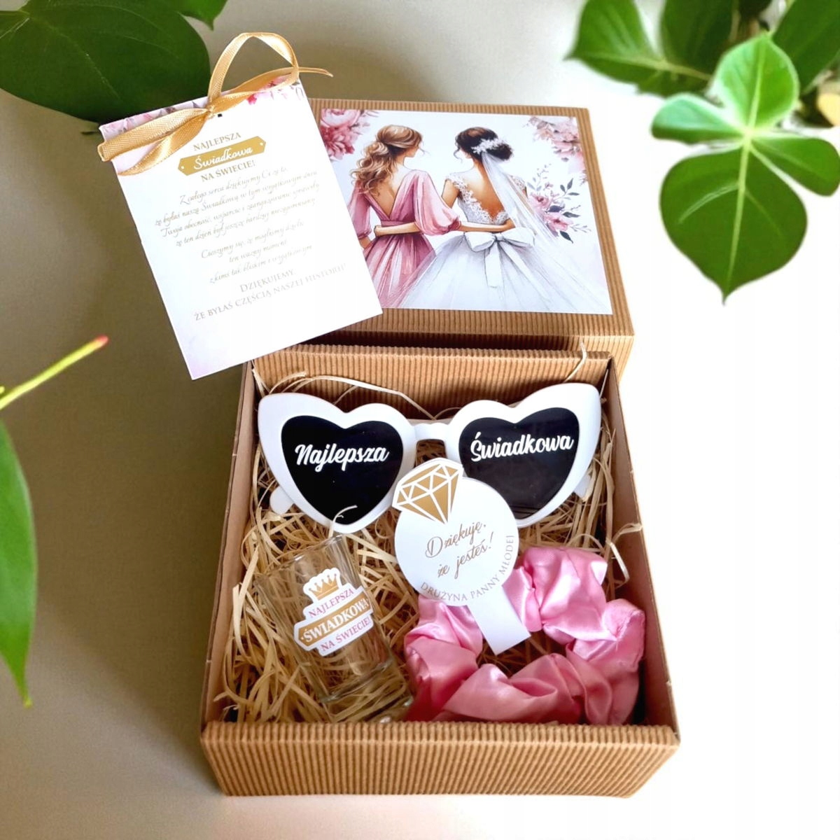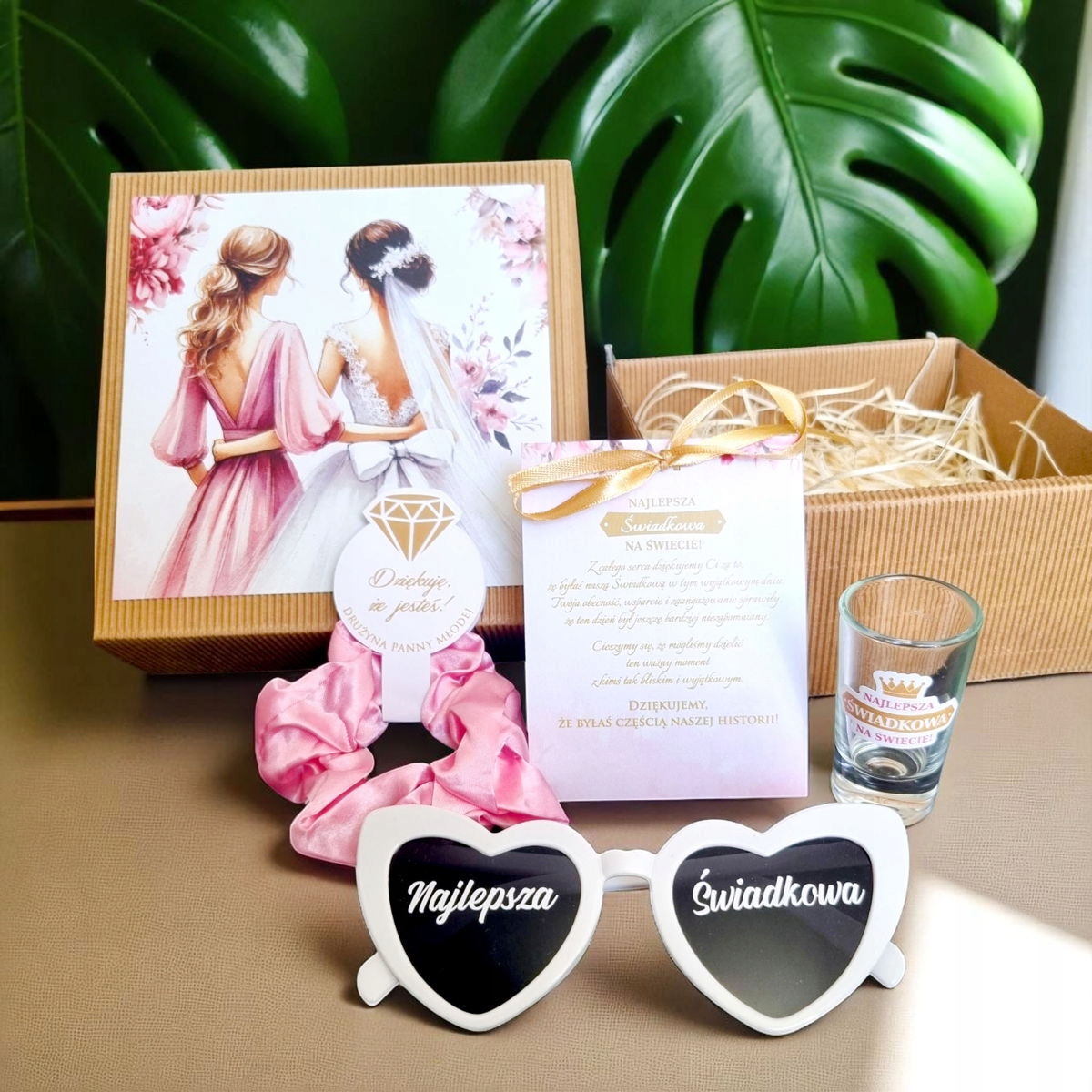pink satin hair elastic scrunchie - stylish and practical✅ glass glass for vodka with the "best witness in the world" sticker - to toast for love