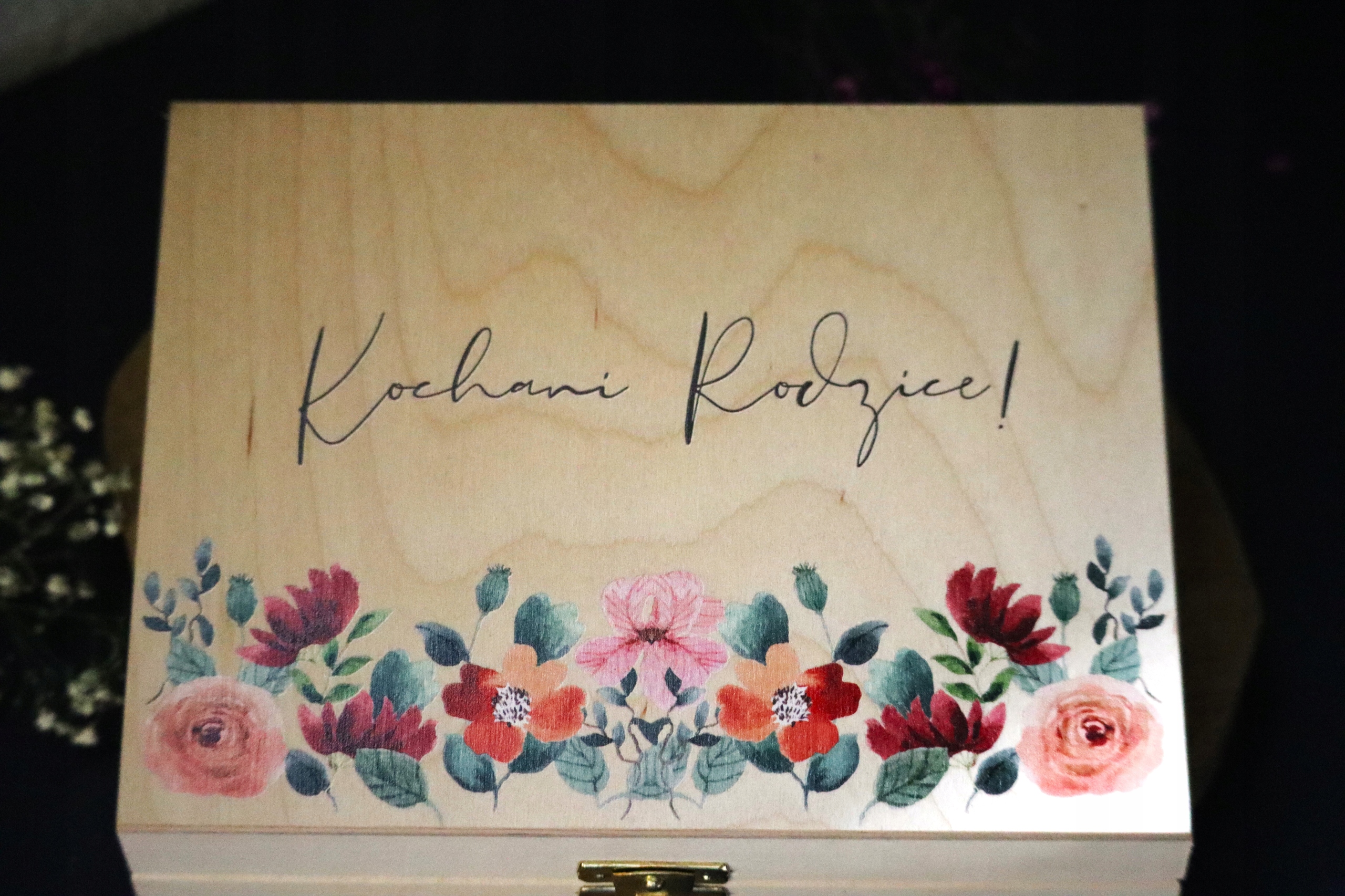 Красива дерев’яна коробка з простором для вашої фотографії як ідеї для унікального та оригінального подарунка для батьків на весілля!