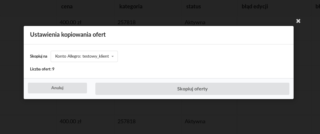 - масово копіювати пропозиції або окремо між вашими обліковими записами Allegro,< /li>