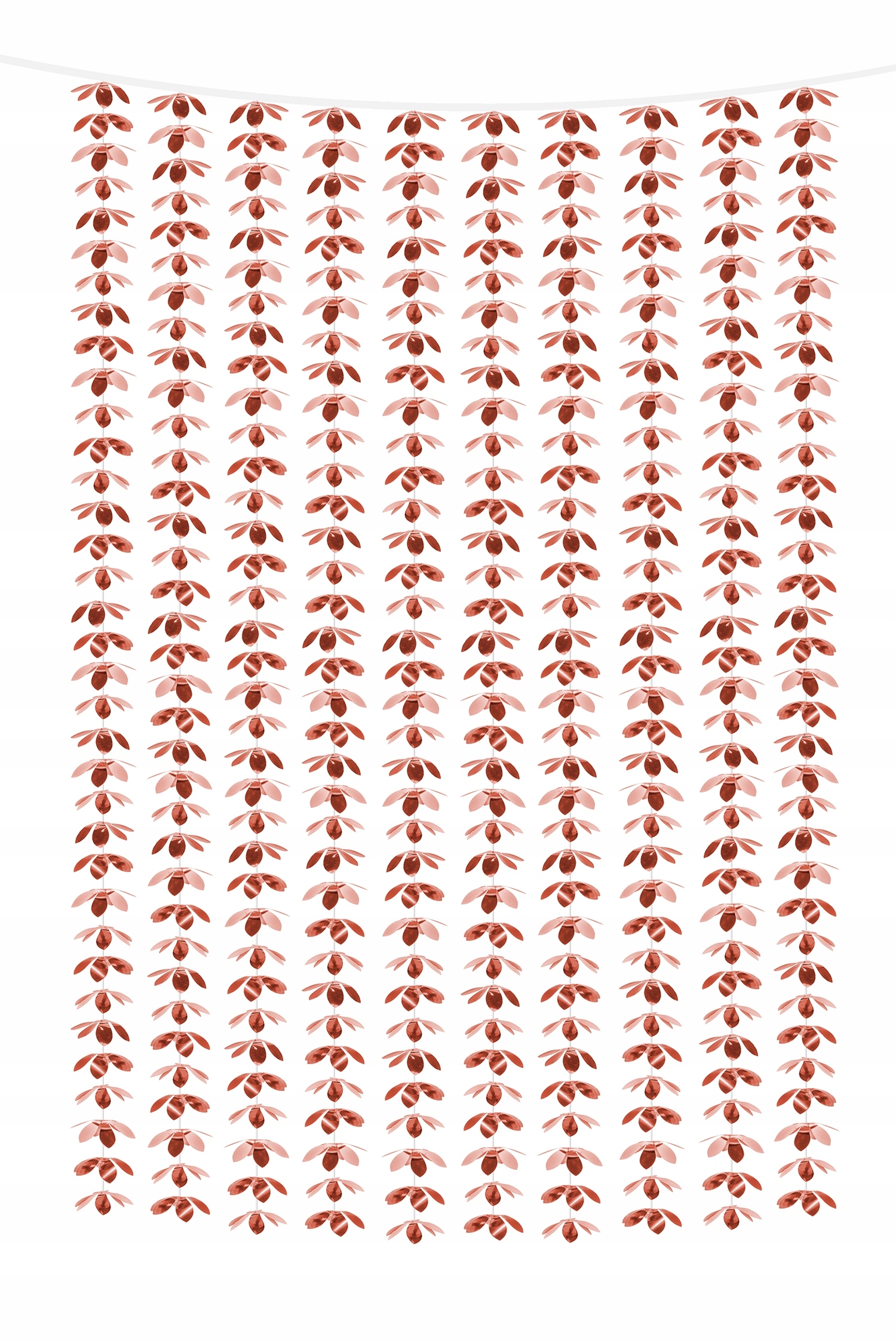 Елегантна декоративна завіса у формі квітів, зроблена з блискучої плівки в тіні рожевого золота. Ідеально підходить як фон для фотографій, прикраси стін або входів на вечірок, таких як весілля, дні народження, дитячий душ або дівочі вечори.