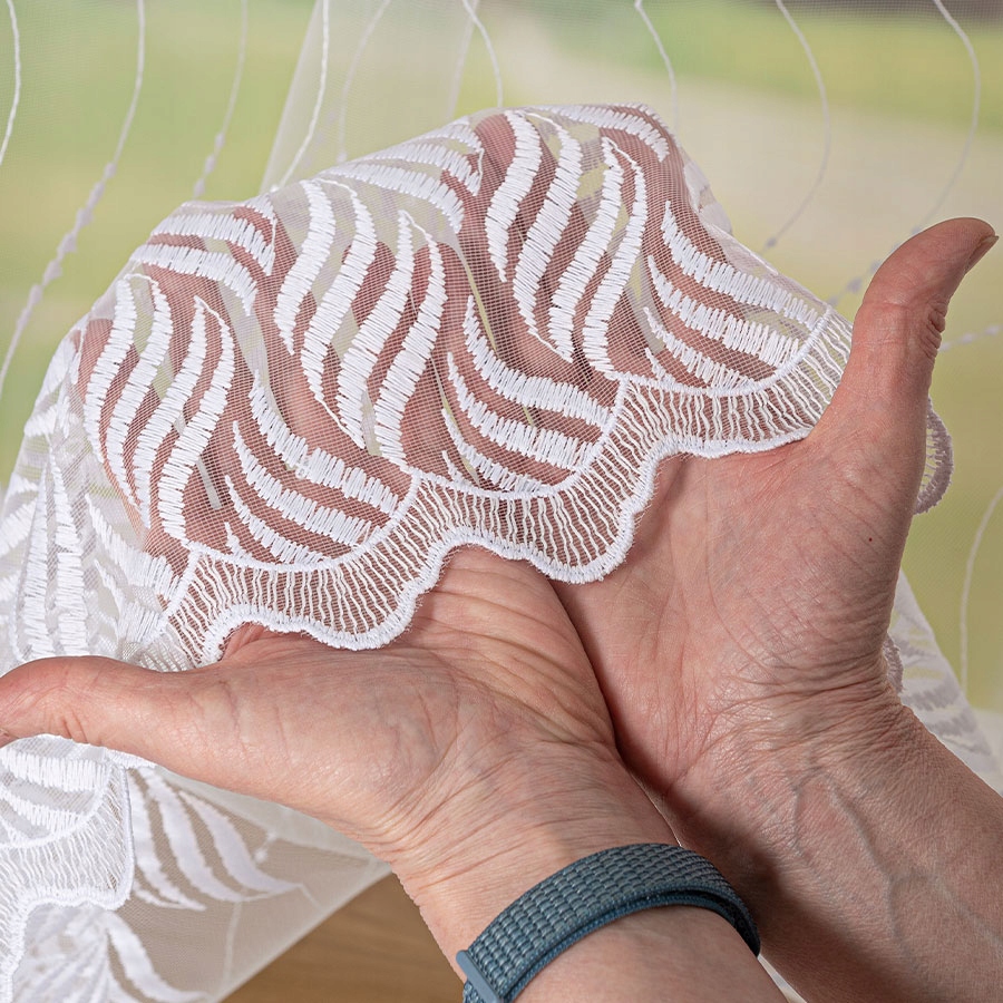 Делікатна тонка сітка майже непомітна у вікні для красивого, вічного малюнка пояса у сльозах, що прикрасить будь -яку кімнату, надаючи свіжість і легкість.