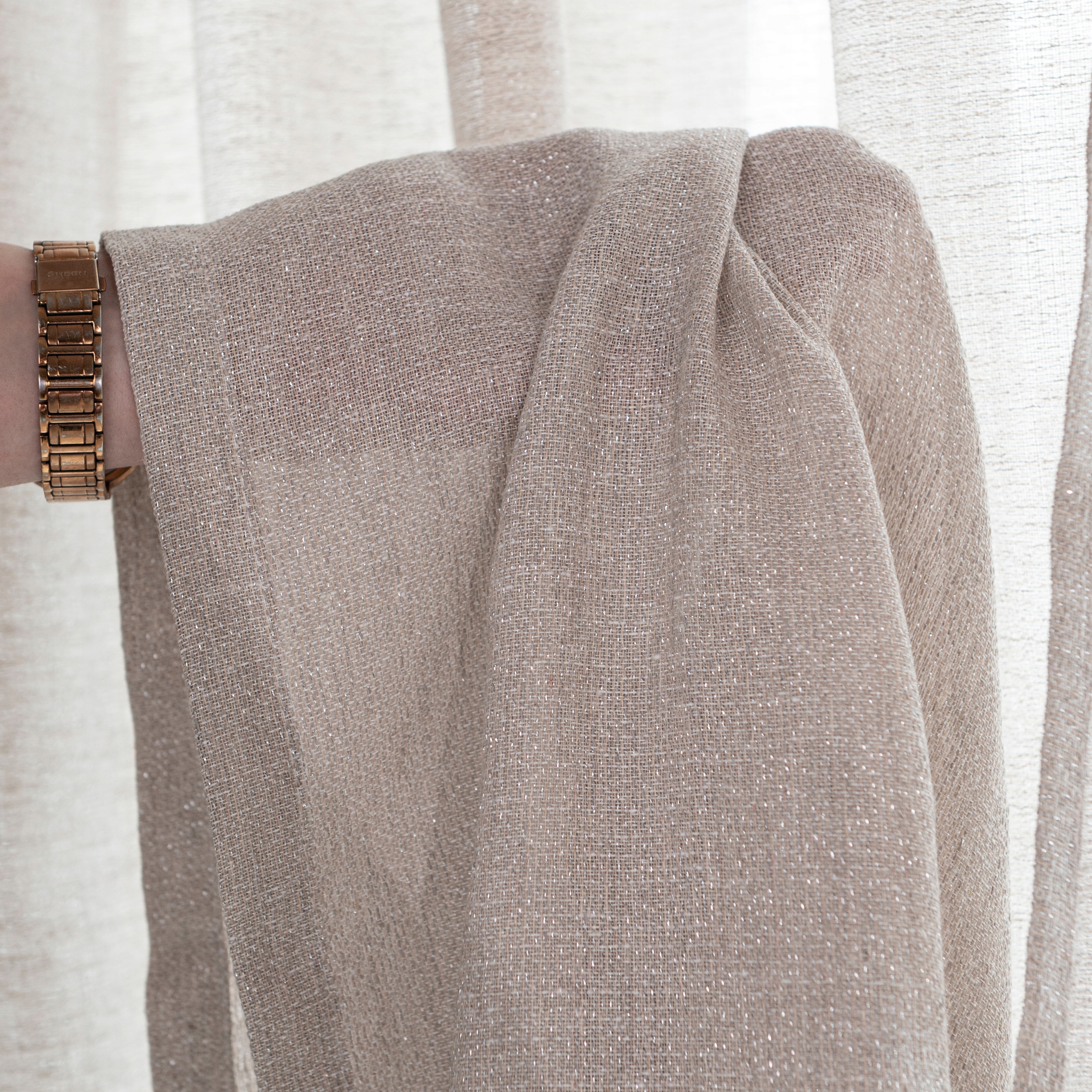 Завдяки своїй унікальній структурі продукт поєднує функції як штор, так і штор . Виготовлений з товстої структурної сітки, збагаченої відшліфованою ниткою, додасть інтер'єру елегантність і тонке сяйво.