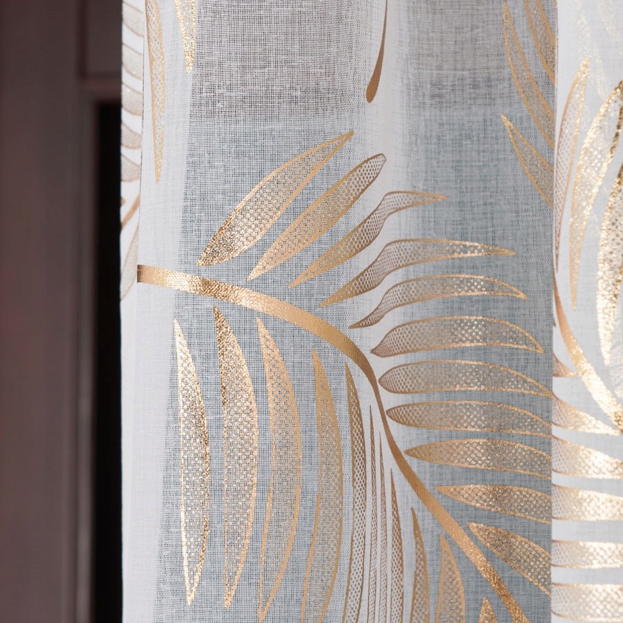 Це елегантність у сучасному виданні. Золоті прикраси - це квінтесенція стилю гламуру, але в той же час візерунок настільки універсальний, що завіса буде працювати в багатьох інтер'єрах.