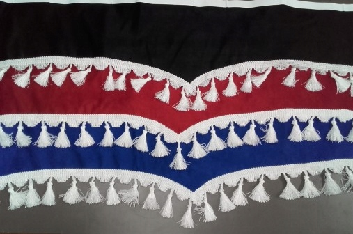 Обробка завершена дзвонами і кріпиться до тертої стрічки до скла або пластику, пришитим по всій довжині. CM