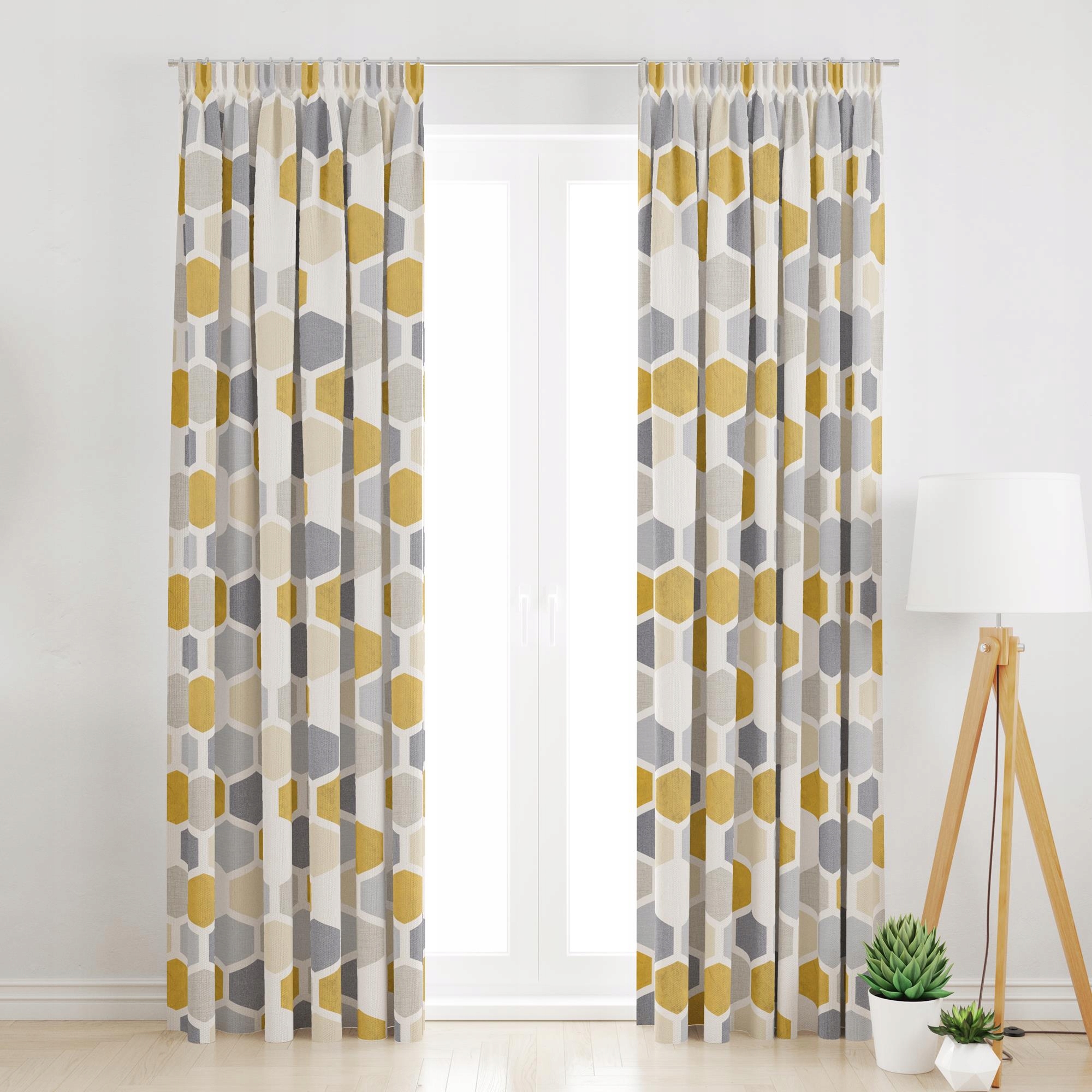штори з геометричним малюнком - це квінтесенція стилю Нью -Йорка та гламуру. Одна -спровона завіса, середня товщина, дуже хороша. Він готовий повісити - він зшить сторони і зшить у 5 см завширшки стрічки. Ви можете повісити його на жаби та безпечні шпильки. Він ідеально підходить як для сучасних, так і для традиційних вікон. Запропонований MARC від 1,5 до 2.