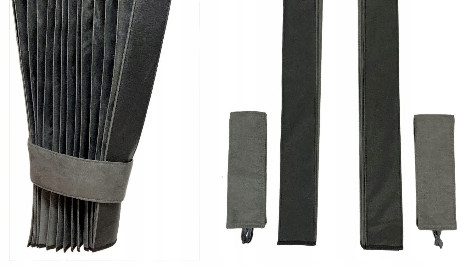 Передня частина штор - край закінчений шкіряним матеріалом, який жорсткий, який посилює всю структуру і полегшує складання після ночі
