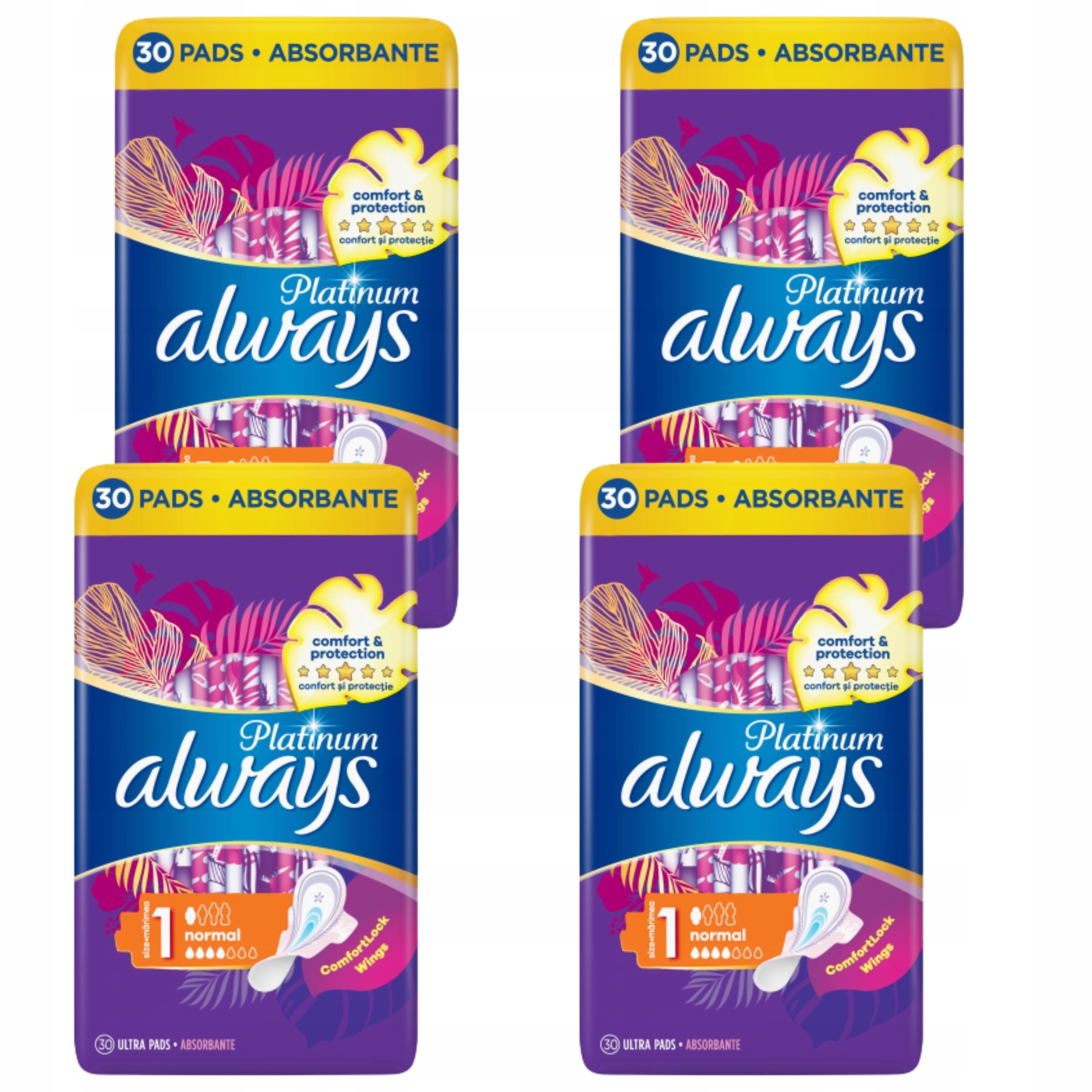 Завжди платинові нормальні (розмір 1) санітарні серветки 4 х 30 шт.