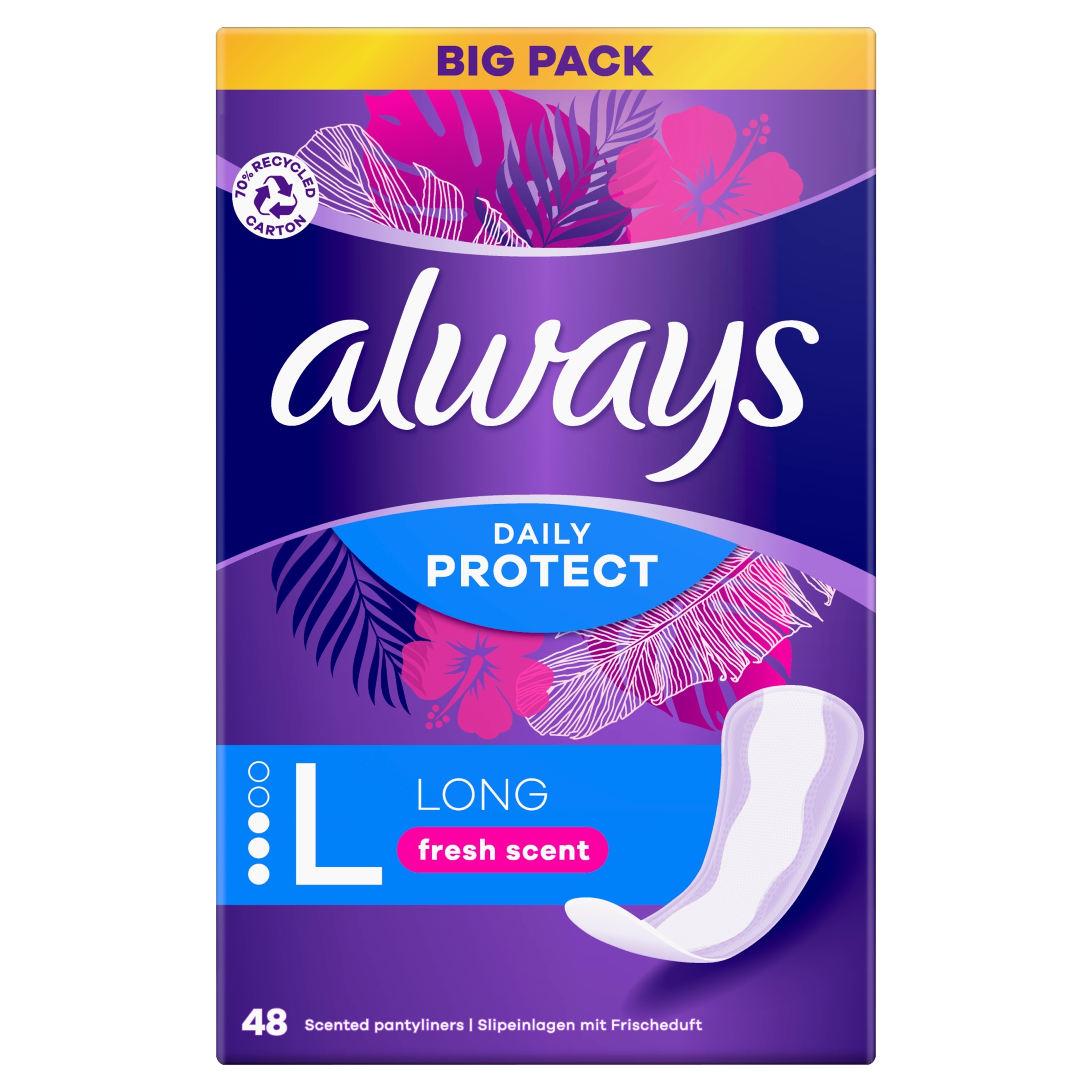 Завжди щоденно захистити довгі гігієні вставки зі свіжим ароматом 48 штук