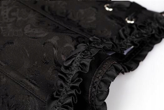 Зав'язаний корсет типу OVERBUST з щільної міцної тканини з непомітним квітковим малюнком. Конструкція складається з 12 міцних корсетних обвалок.