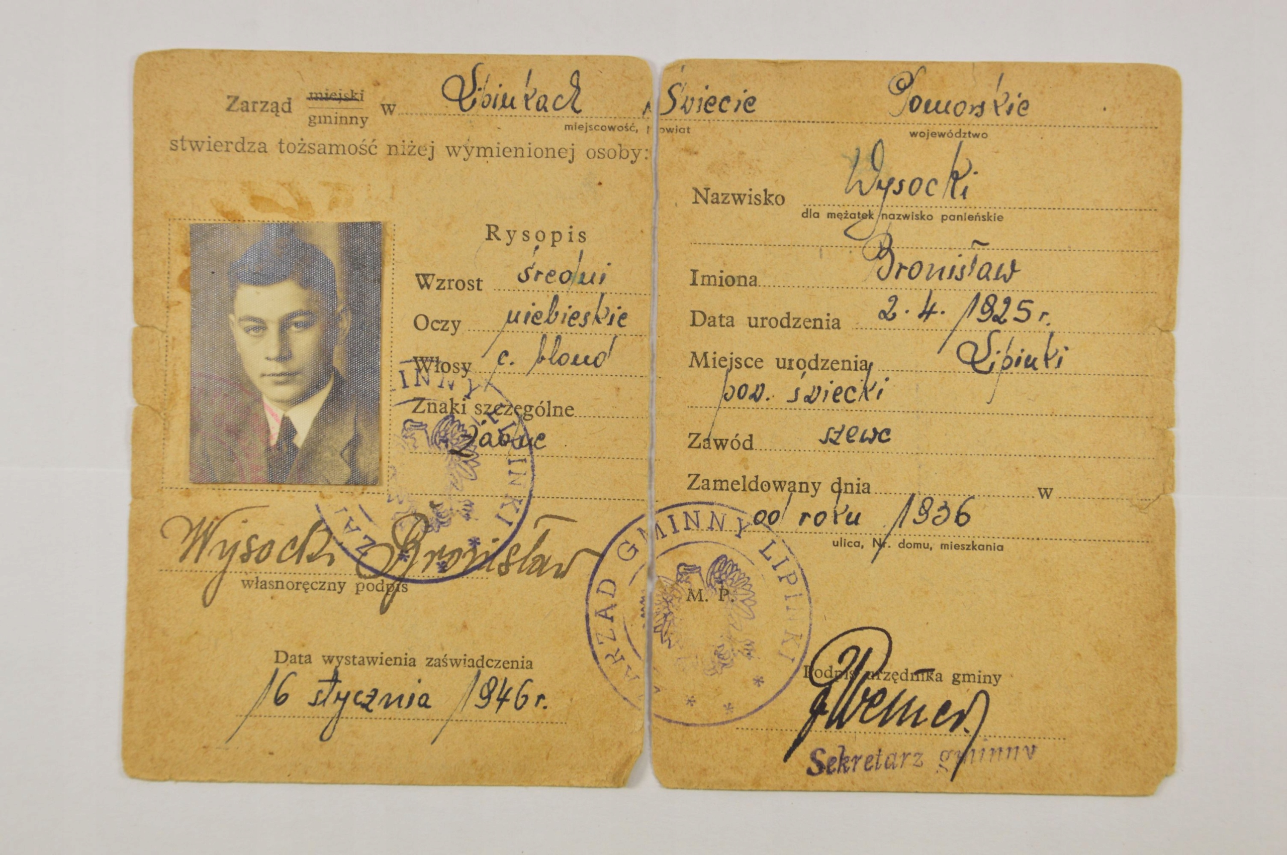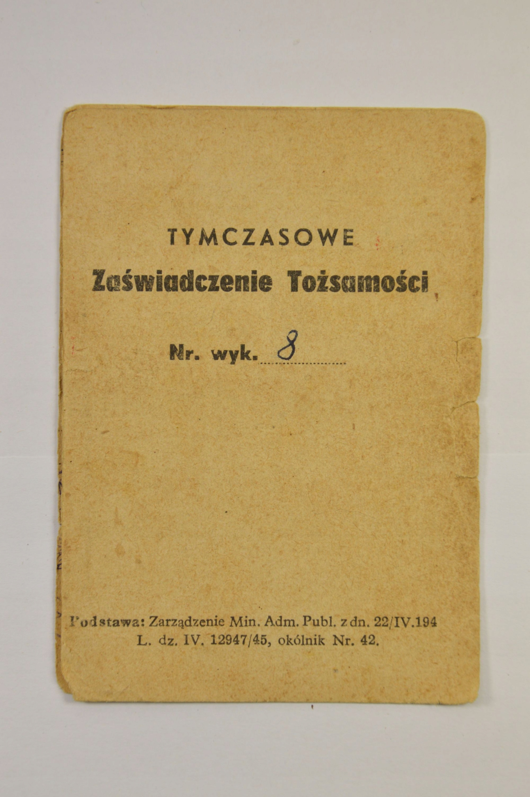 ZAŚWIADCZENIE TOŻSAMOŚCI ŚWIECIE 1946 r. NISKI NUMER