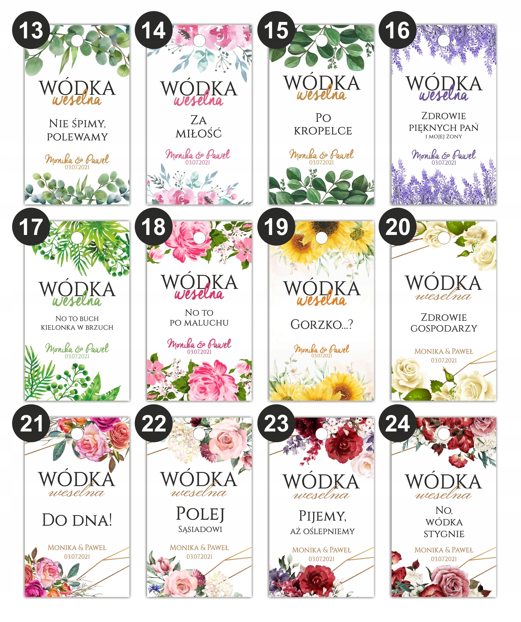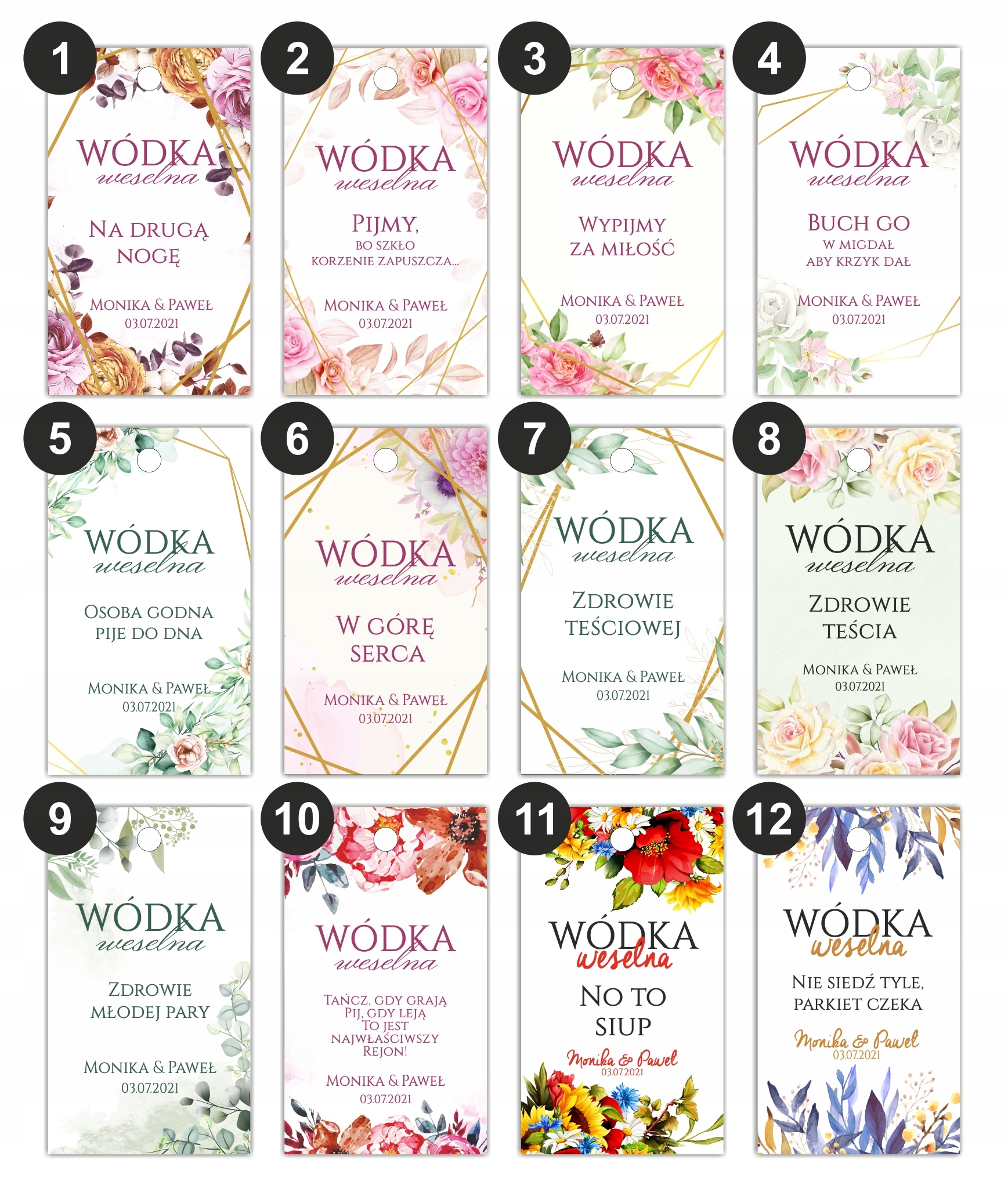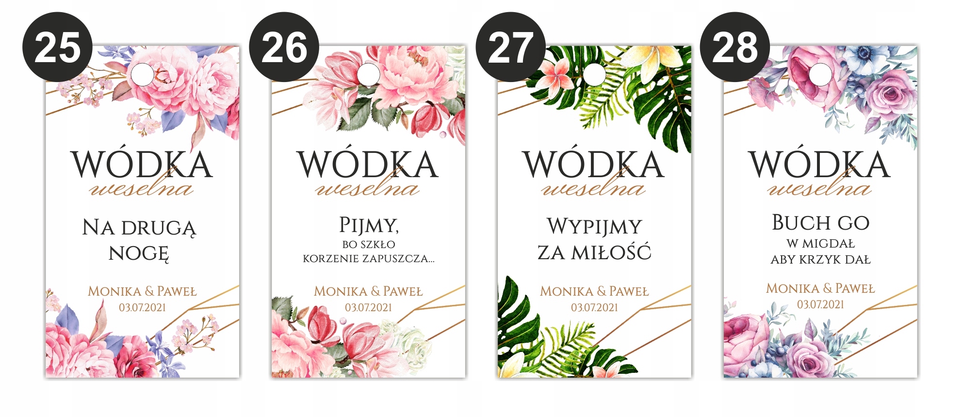 ZAWIESZKI na alkohol wódke ETYKIETY 50 szt ślub