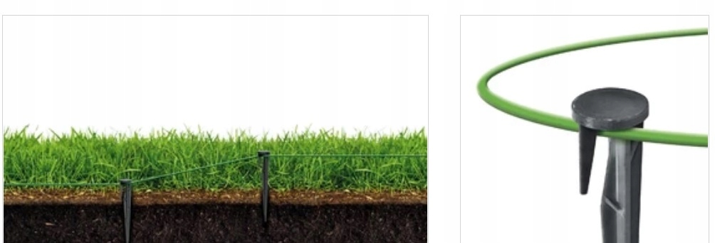 Шпилька LinePEG 100 для встановлення обмежувального дроту газонокосарки. Завдяки своїй структурі він також використовується для легкого та швидкого кріплення сіток проти кротів і мотузок під час маркування, серед іншого, контур саду на етапі проектування.
