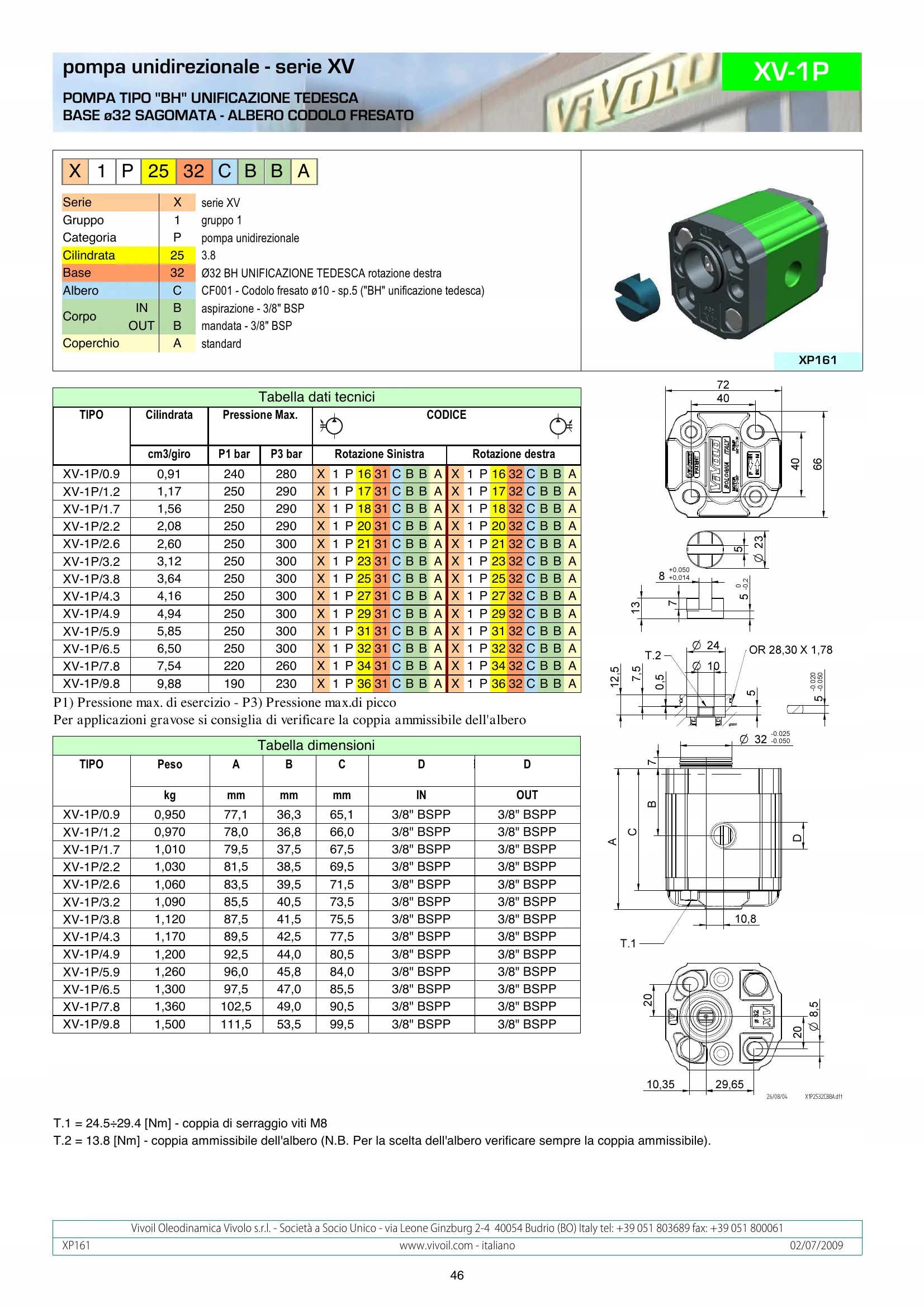Гідравлічний редукторний насос XV-1P/2.2 см3/обертання X1P2032CBBA + зчеплення тріщини