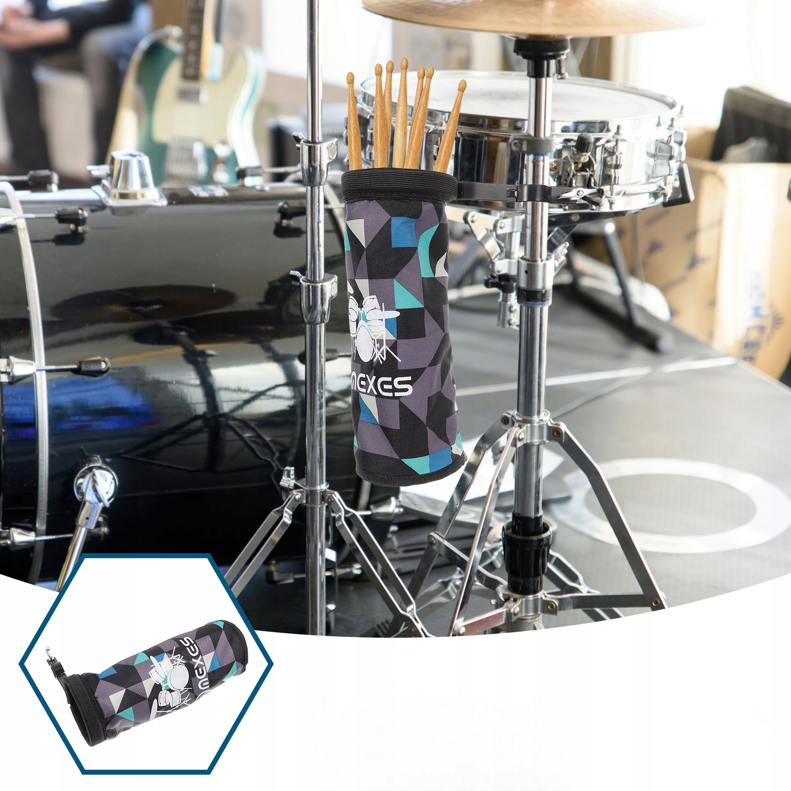 ✅Тримач барабанних паличок розроблений із затискачем, який міцно утримує сумку на місці та запобігає її переміщенню.