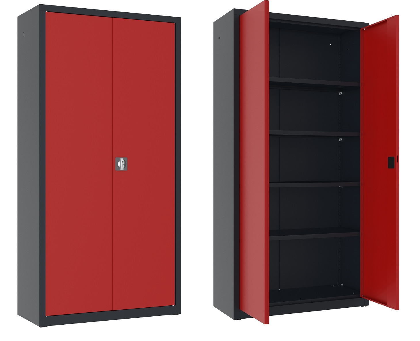 Оздоблення: холоднокатаний листовий метал, порошкове покриття, колір: корпус RAL 7016 Графіт / двері: RAL 3020 - червоний.
