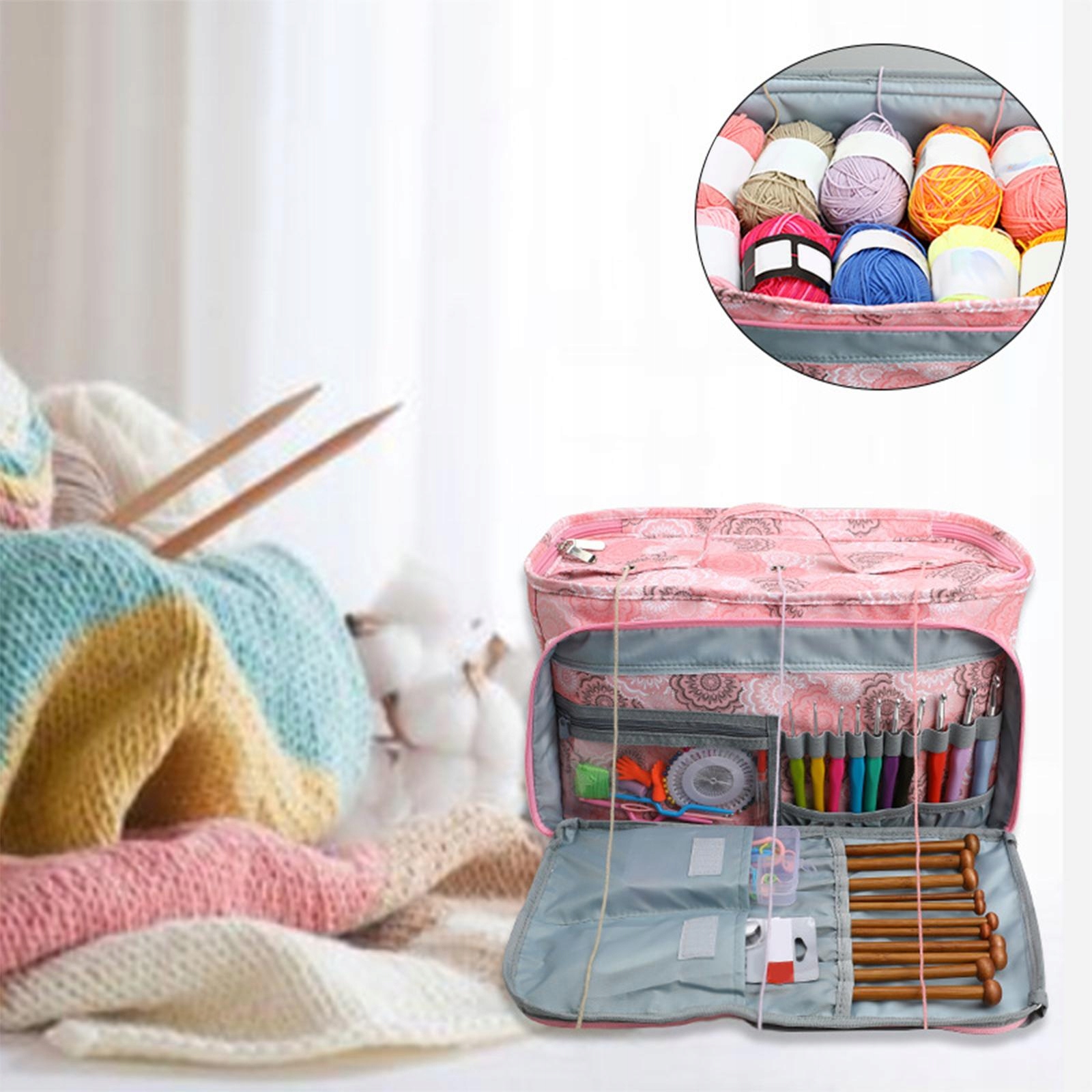 Практичний: функціональний та водонепроникний, прорізайте пряжу над відкриттям пряжі вгорі і зробити блискавку, щоб уникнути заплутаного, може отримати пряжу через отвір на вершині із закриттям блискавки у разі звивистості.