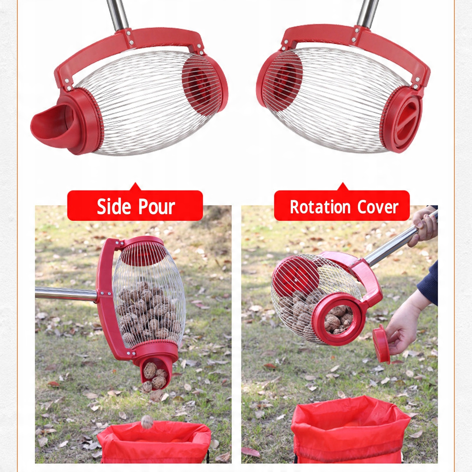 4. Простота експлуатації: покладіть рулон на горіх або кульку на землю, потім повторіть рух вперед і назад, ви зможете легко зібрати горіх і кульку в дротяний кошик.