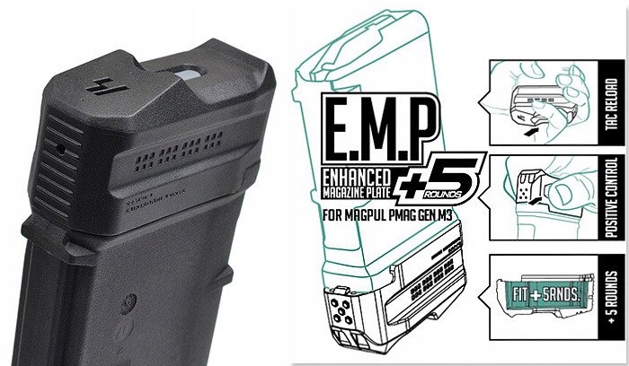 Підніжка магазину E.M.P Покращена магазинна пластина, розроблена для магазинів Magpul PMAG® Gen M3. Його виготовила американська компанія Strike Industries.