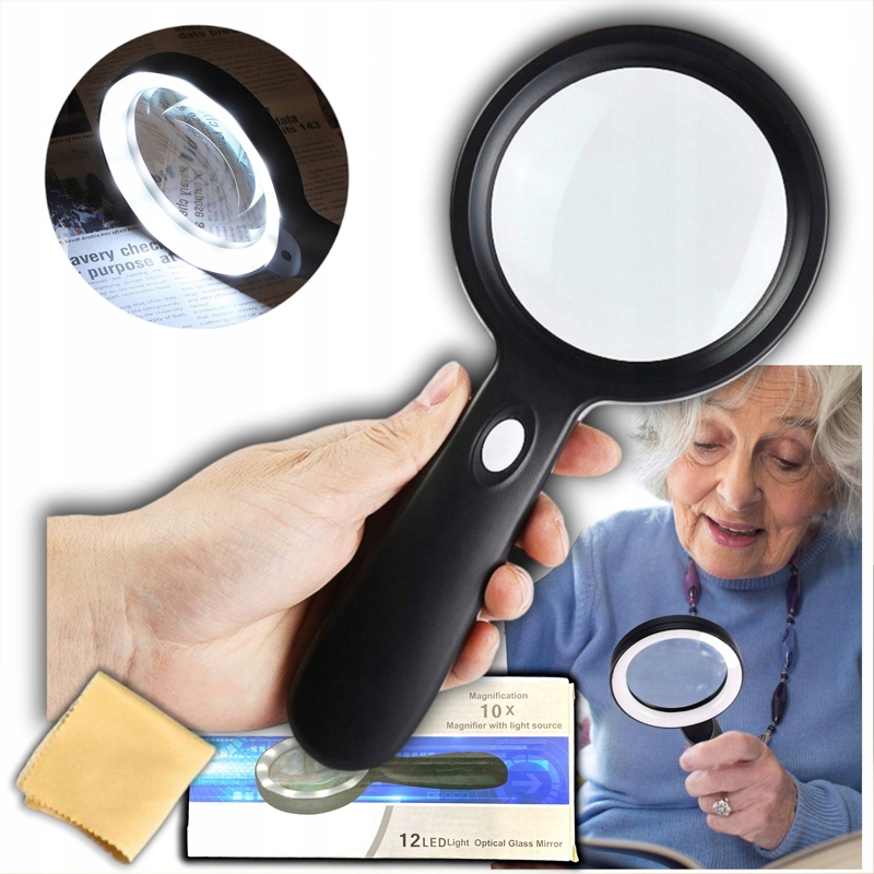 🔍 світильники】 Цей лупа з 12 світлодіодами Ultra -Lane. Він добре пристосований для людей з поганим зором. Здорове світлодіодне освітлення дозволяє людям довго читати в темряві. Біла конструкція лампи LDE з м’яким світлом, нелегкою, краще захищає очі