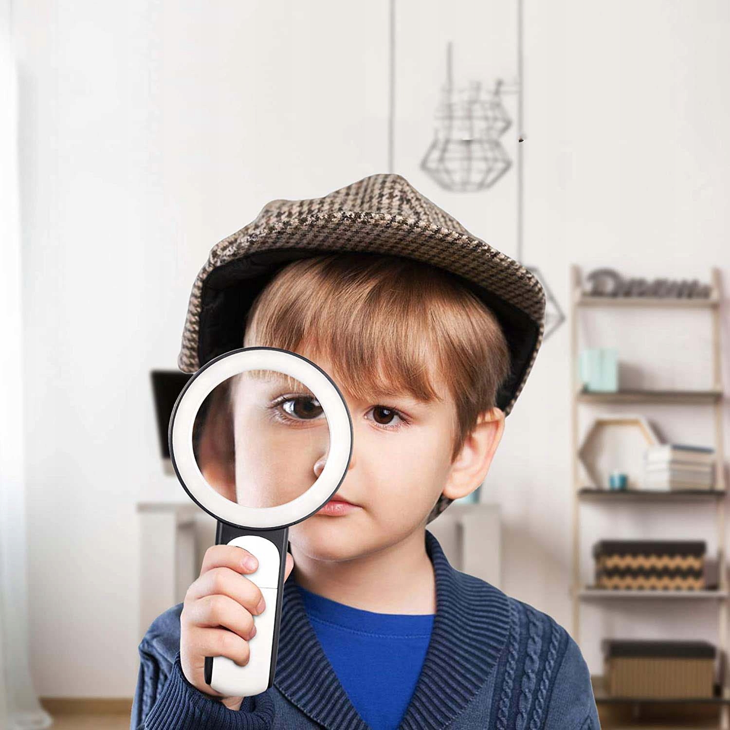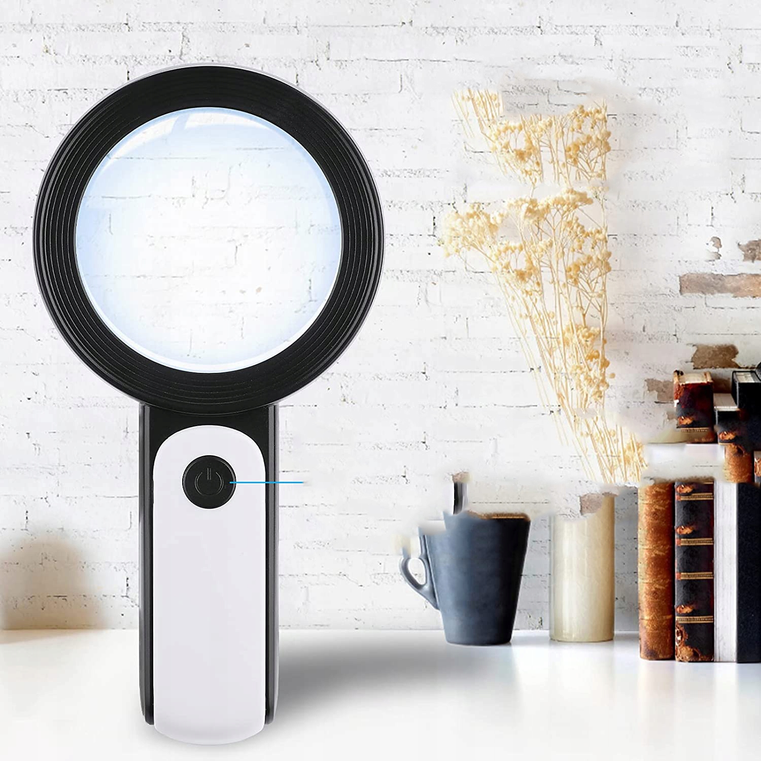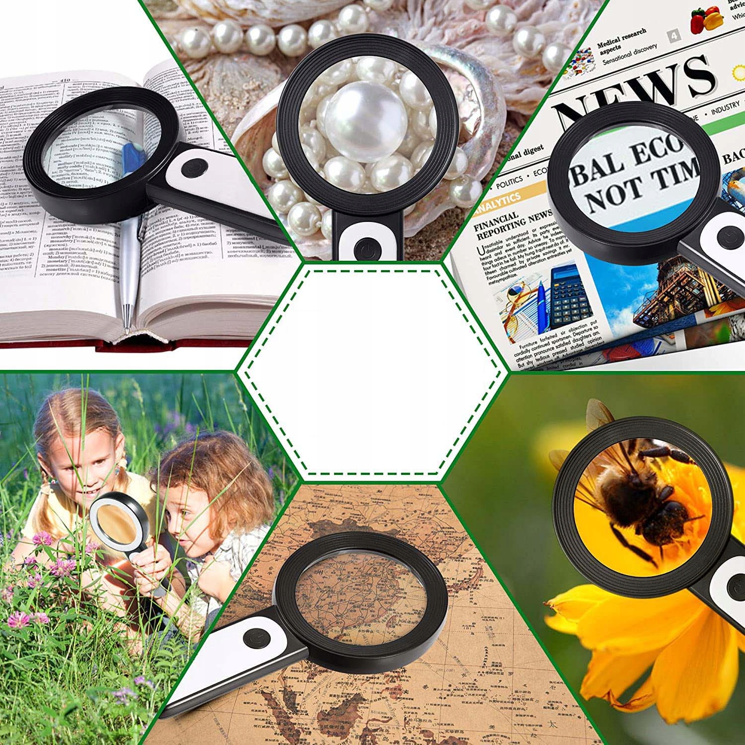 🎁 Ідеальний подарунок для людей похилого віку та дітей: Ручний лупа зі світлом підходить для людей похилого віку, щоб прочитати невеликий друк у посібниках користувачів, квитанції, рецепти, пляшки з лікарськими засобами, а також читання книг, газетів, журналів тощо.