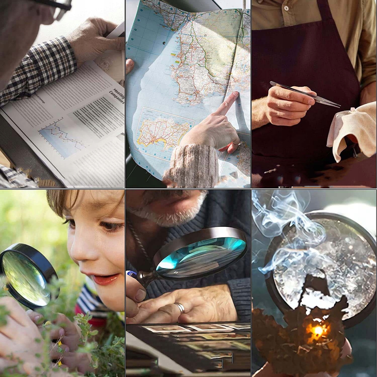 🔎 Покращене збільшення збільшення: Цей лупа пропонує 30-кратне збільшення. Скло має подвійний шар високоякісних оптичних скляних лінз (це не смоляні або акрилові лінзи), що забезпечує стійкість до подряпин та виняткової прозорості. Об'єктив має діаметр 7,7 см і забезпечує широке поле зору. Ідеальне розширення допомагає старшим та інвалідам людям легко та обережно читати текст.