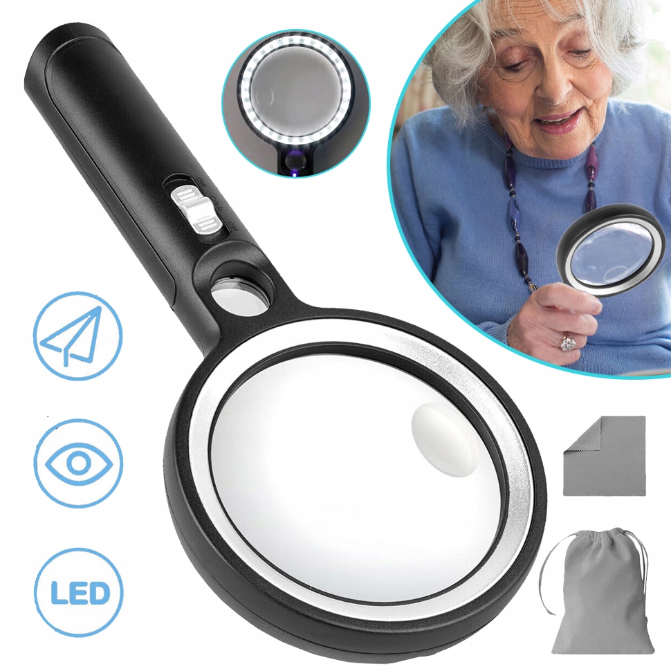 Просматривая «Расширение стекло с 30 светодиодами, 10x 20x 45x Ручное освещение», вы можете быть уверены, что данный товар из каталога «Лупы» будет доставлен из Польши и проверен на целостность. В цене товара, указанной на сайте, учтена доставка из Польши. Внимание!!! Товары для Евросоюза, согласно законодательству стран Евросоюза, могут отличаться упаковкой или наполнением.