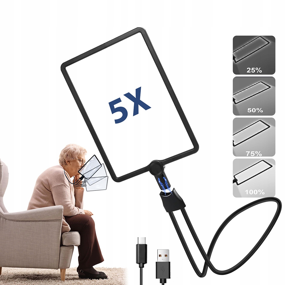 5-кратний лупу без використання рук з висячим, гнучким лунком на повній сторінці з 50 світлодіодами, 24 х 17 см, великим лункою для читання невеликих відбитків та для людей похилого віку з дефектами зору та старінням