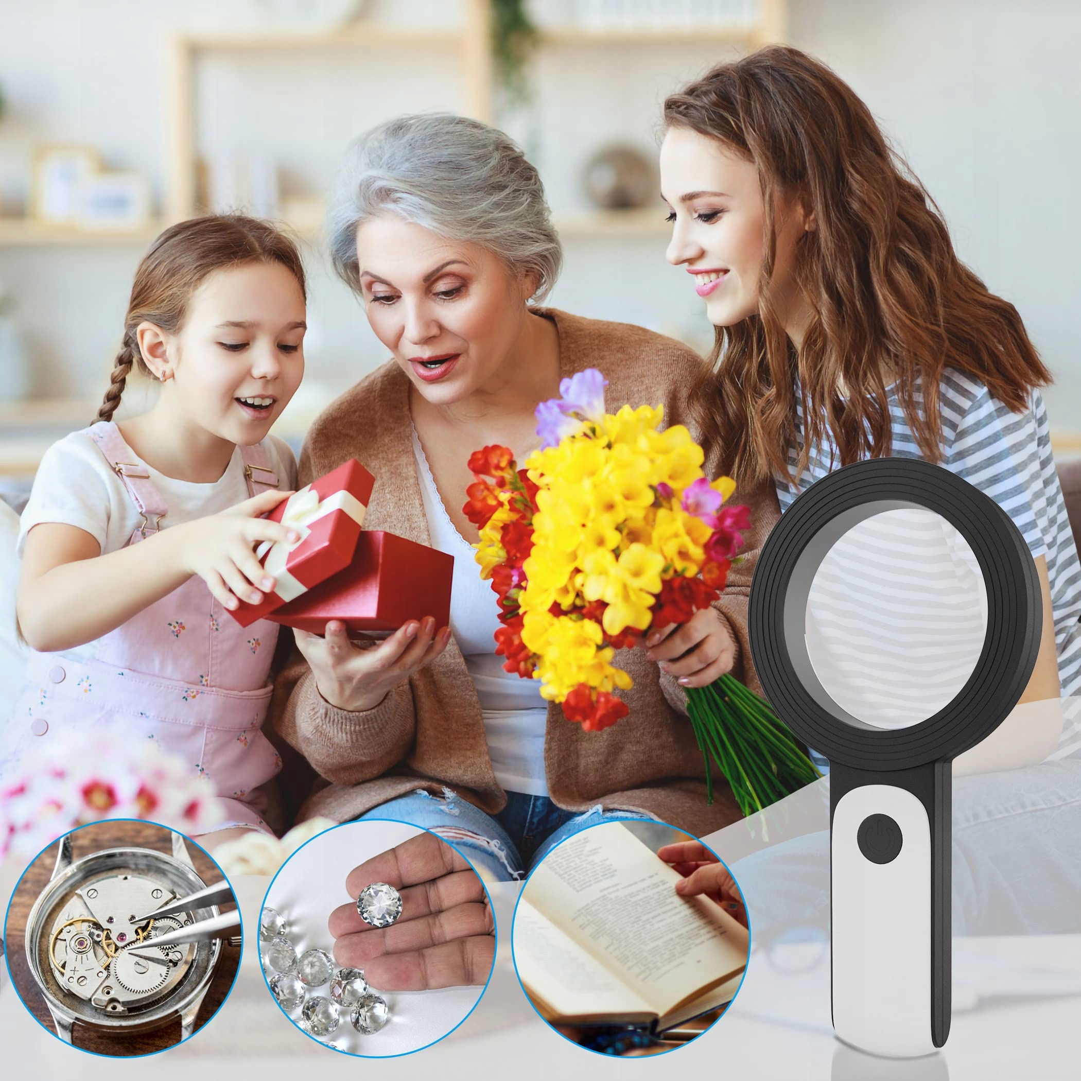 ♦️♦️【Чудовий подарунок для людей похилого віку】Більшості людей похилого віку важко читати дрібний шрифт на купонах, рецептах, пляшках з ліками. Прозора лупа зі світлом стане гарним помічником в якості подарунка пенсіонерам. Теплий подарунок для людей похилого віку (мама, тато, бабуся, дідусь) для читання дрібним шрифтом.