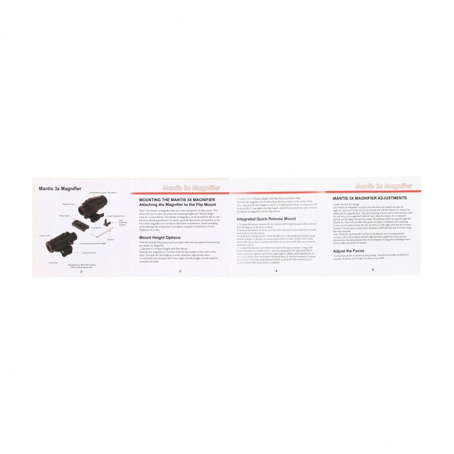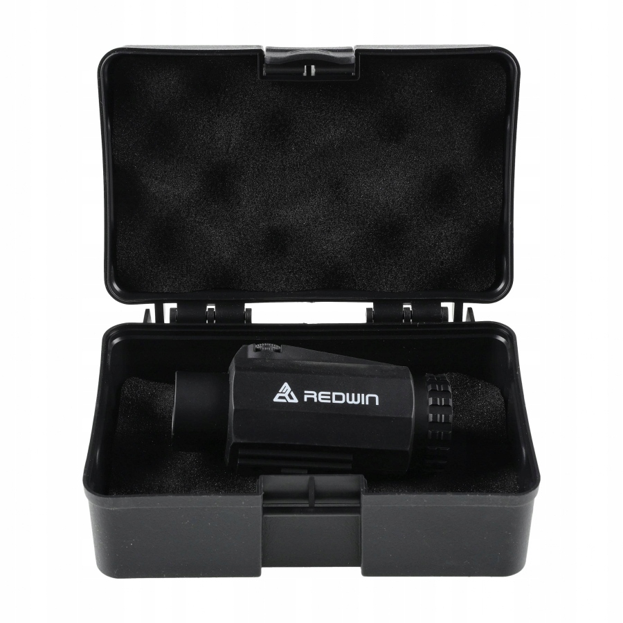Збільшувач Redwin має окуляр, який забезпечує зручне фокусування, що дозволяє швидко налаштувати зображення під поточні умови. Збільшувач оснащено тактичною ручкою з клапаном, що дозволяє швидко нахиляти пристрій убік, дозволяючи негайно повернутися до використання коліматора.