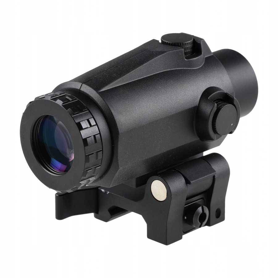 - Функціональність: прогумований корпус, стійкий до різних зовнішніх умов. Тактичне кріплення дозволяє швидко відсунути збільшувач в сторону.