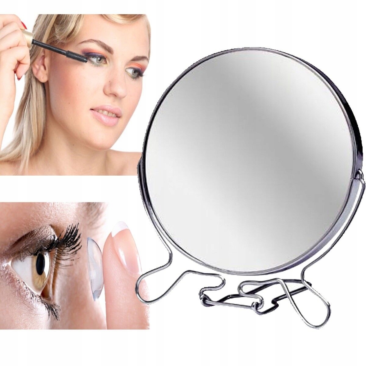 Двостороннє дзеркало з міцного матеріалу забезпечує тривале використання. Обертовий, двосторонній дизайн зробить процес макіяжу простішим і ефективнішим. Дзеркало є обов'язковим аксесуаром для кожної жіночої сумочки. Завдяки складній підставці його можна брати з собою всюди.