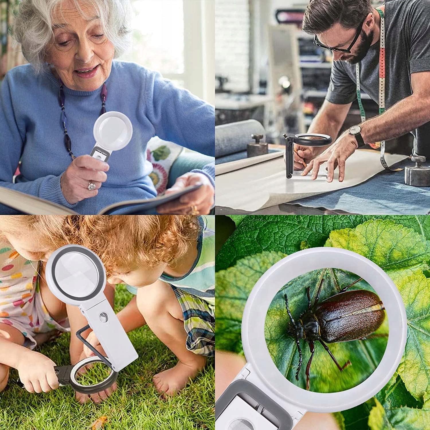 ▶ Ідеальний подарунок для людей похилого віку: лупа для читання з підсвічуванням підходить для читання літніми людьми. Люди похилого віку читають газети, читають різні підручники і т. д. Ви можете переглядати невеликі фотографії та тексти з лупою для читання за допомогою рідера. При цьому лупа підходить для дітей і професіоналів. З його допомогою можна спостерігати за дрібними тваринами, розпізнавати ювелірні вироби та оглядати вироби ручної роботи.