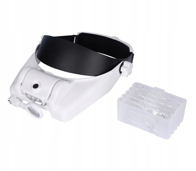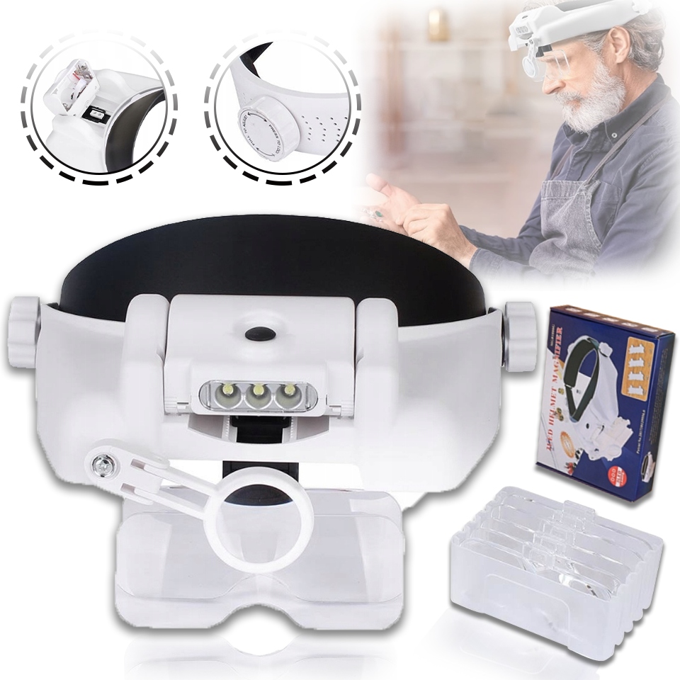 Лупа розміщується на голові за допомогою пов'язки, тому ви можете вільно працювати обома руками. Застосування збільшувального скла включає в’язання гачком, моделювання, ремонт мікроелектроніки та дрібних технічних виробів, ремонт ювелірних виробів і оцінку мистецтва.