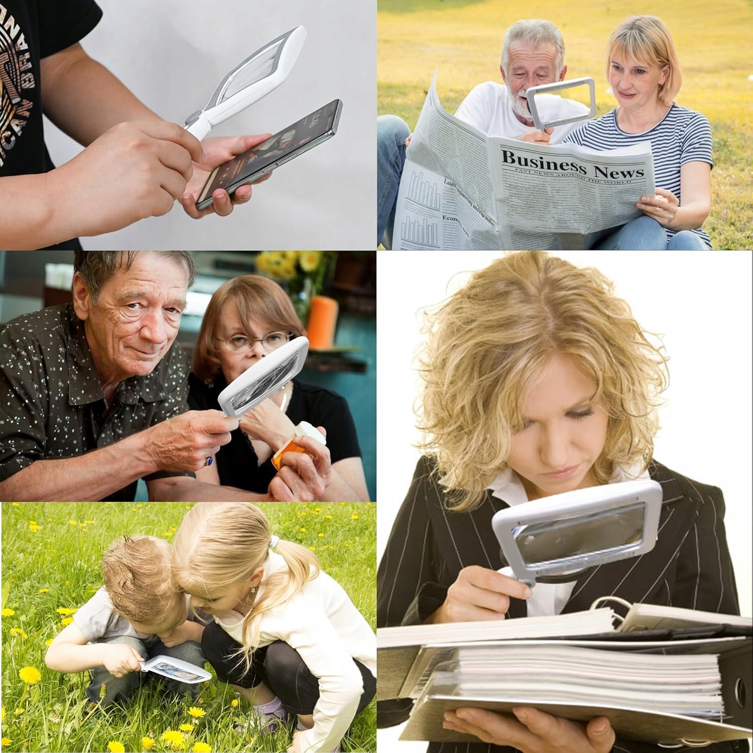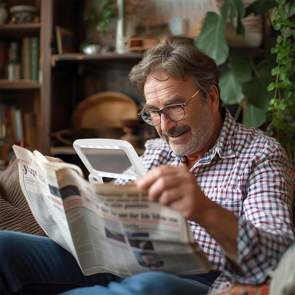 ЗБІЛЬШУВАЛЬНЕ СКЛО З ПІДСВІТЛЮВАННЯМ, 4-КРАТНЕ ЗБІЛЬШЕННЯ ЧИТАННЯ, ВЕЛИКЕ, СКЛАДНЕ