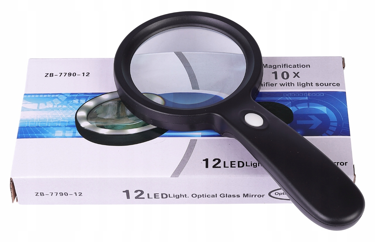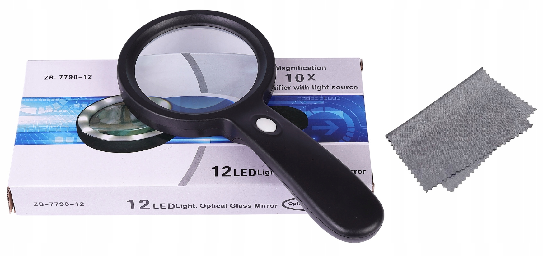 Збільшувальне скло з родзинкою 12 світлодіодного 10x + тканини