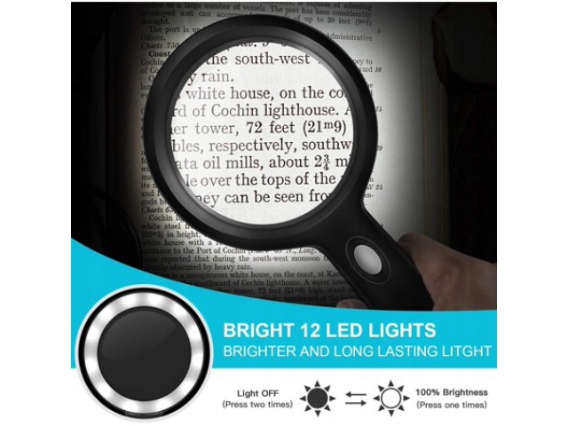 ✅ Лупа ідеально підходить для читання - завдяки вбудованим 12 світлодіодним діодам, що також чудово вночі!