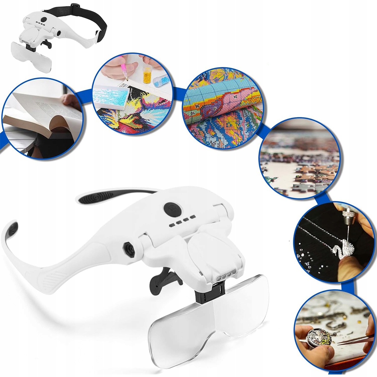 – лупа для алмазного малювання зручно розташовується на вашій голові, залишаючи руки вільними. Запобігає тремтінню, спричиненому втомою або нестабільністю руки, забезпечуючи чітке та стабільне зображення, що робить роботу легшою та ефективнішою.