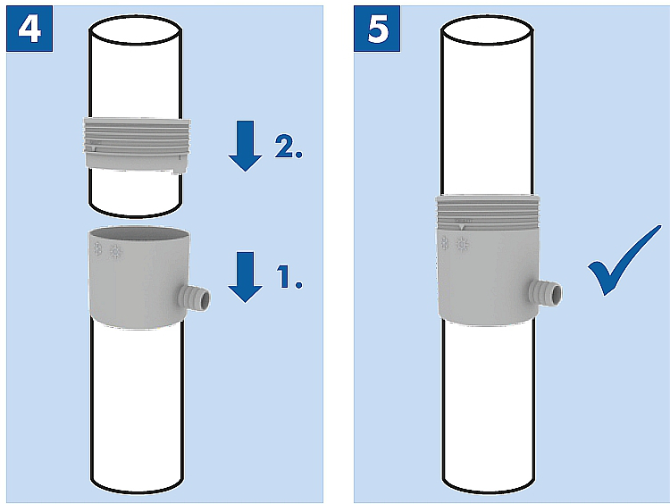 Швидкий і легкий монтаж - без демонтажу водостічної труби. Універсальне застосування в водостічних трубах з ПВХ і металу діаметром від 80 до 105 мм.