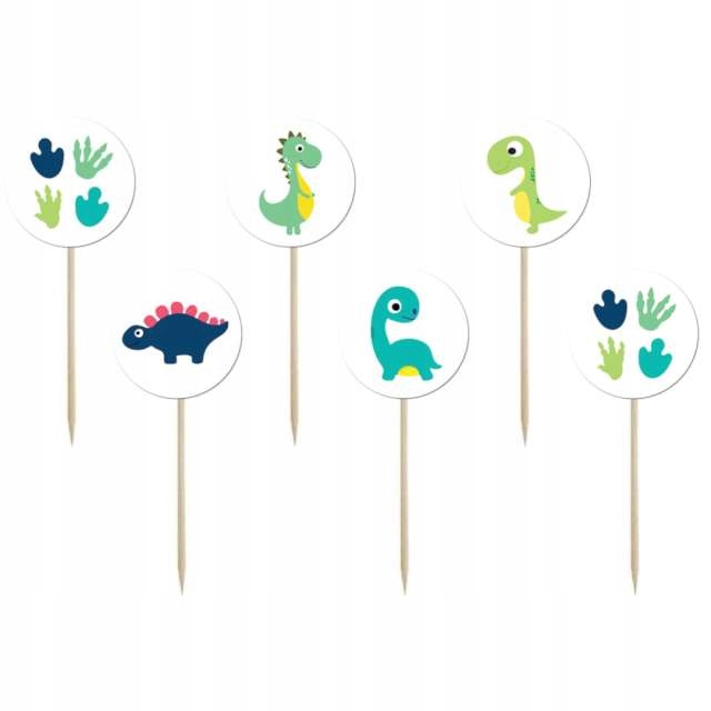 Круглі паперові маркери з веселим мотивом динозавра. Ідеально підходить для прикраси торта, випічки або кексів на вечірці. Якщо ваша дитина є фанатом доісторичних ящірок і посміхається, коли бачить динозаврів, це буде ідеальною прикрасою для її дня народження чи вечірки.