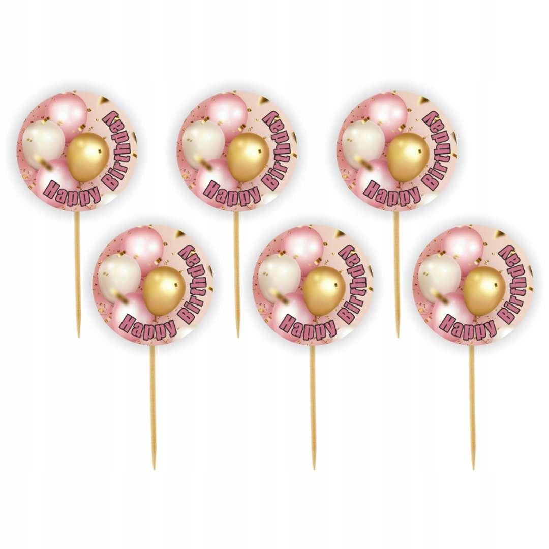 Чарівні піке із зображенням рожевих і золотих повітряних кульок ідеально підходять для святкування дня народження. Прикрашені ними капкейки або мафіни будуть не тільки смачними, але і дуже ефектними. Вони неодмінно прикрасять іменинний стіл і іменинний торт.